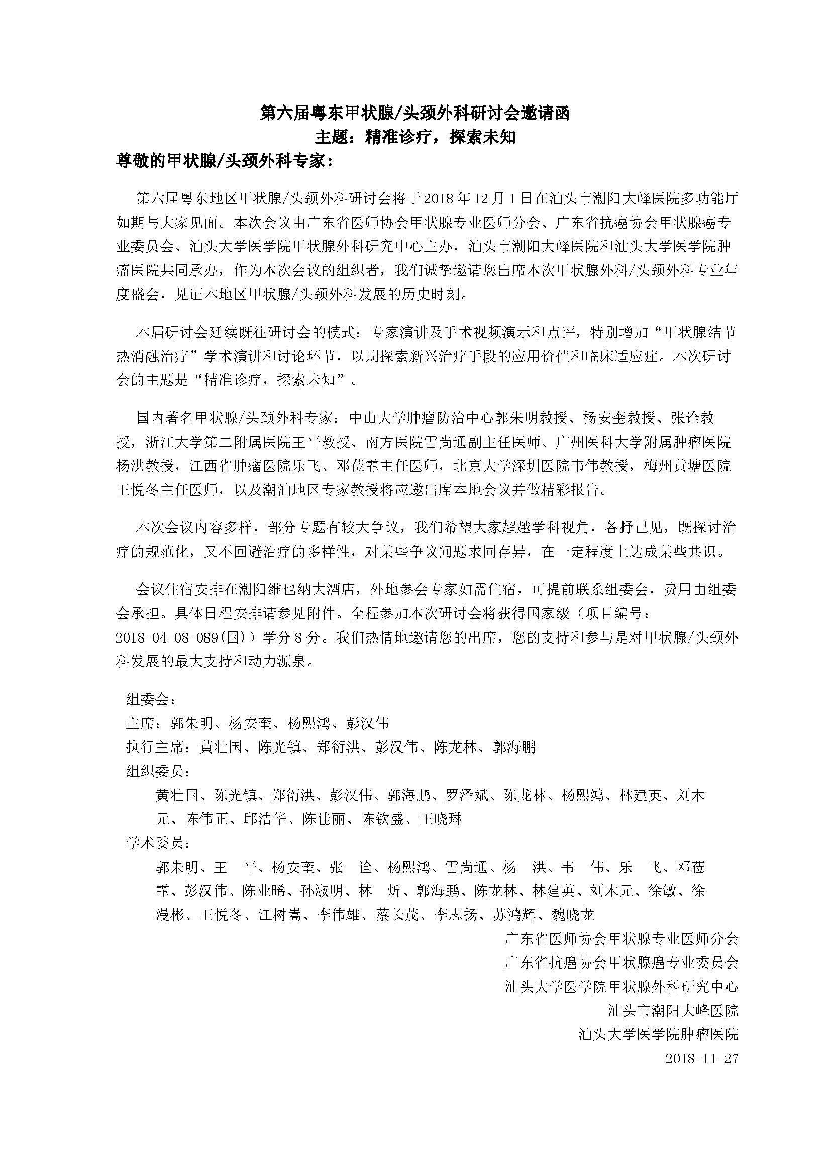 第六届粤东甲状腺/头颈外科研讨会邀请函