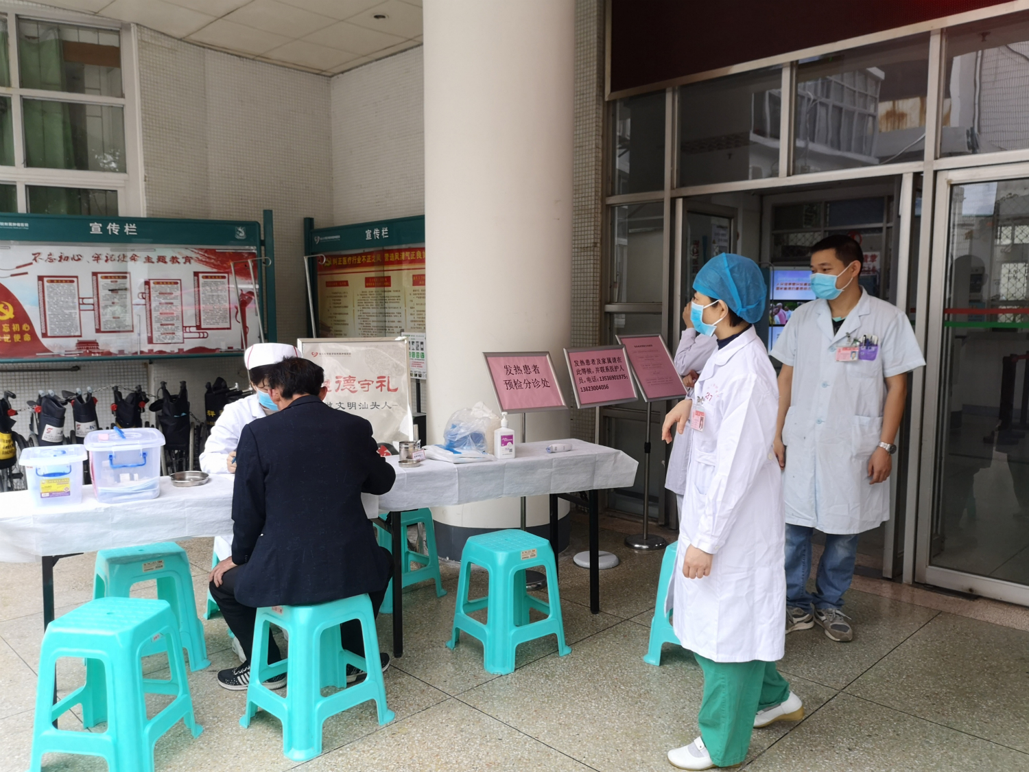 1月29日上午7:30,院感科、门诊部联合对预检分诊处工作人员进行上岗前培训,针对新型冠状病毒感染的肺炎预检分诊处的防护与消毒措施、分诊操作流程、七步洗手法及防护物品穿脱操作流程演示。