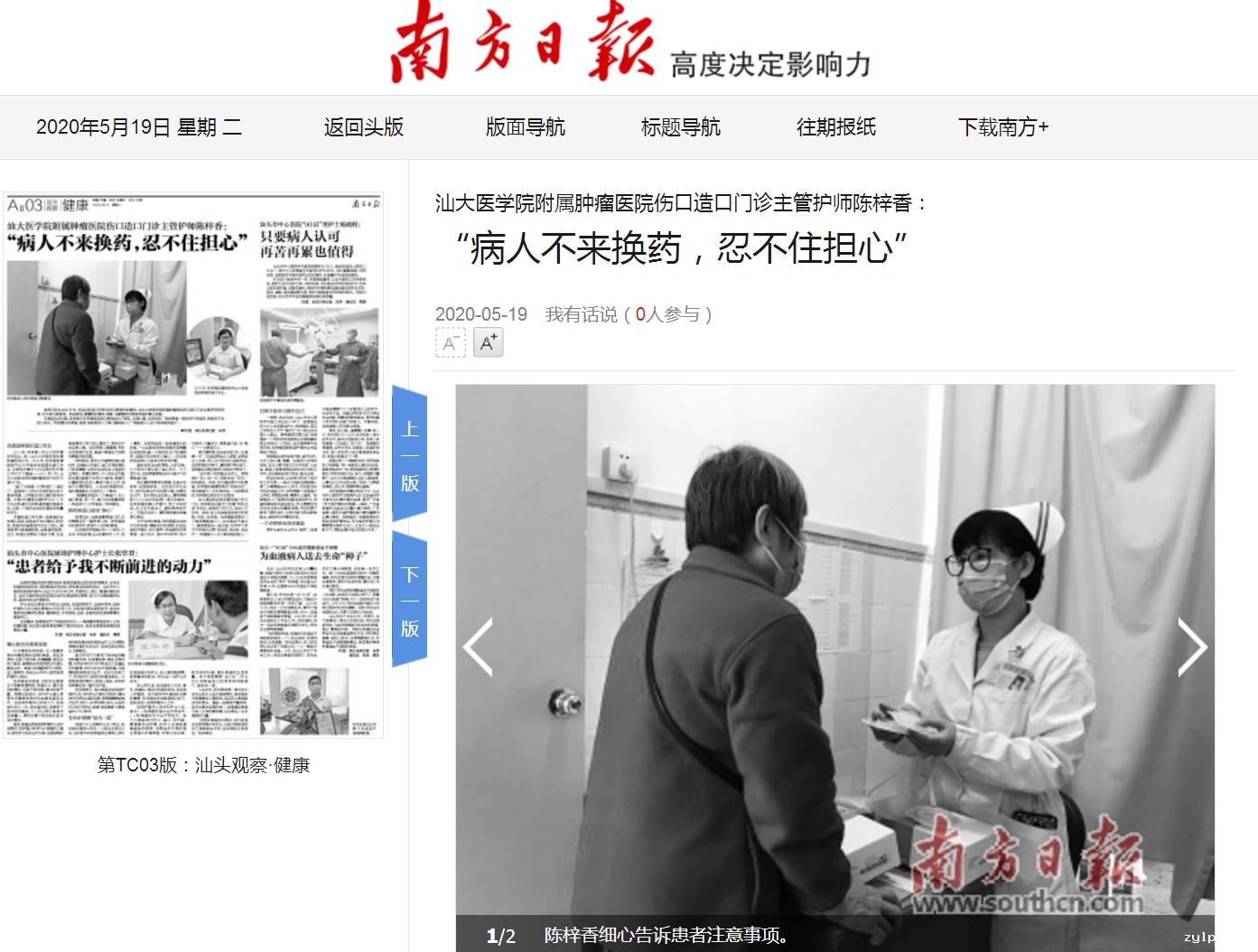 【媒体视角】南方日报:汕大医学院附属肿瘤医院伤口造口门诊主管护师陈梓香:“病人不来换药,忍不住担心”