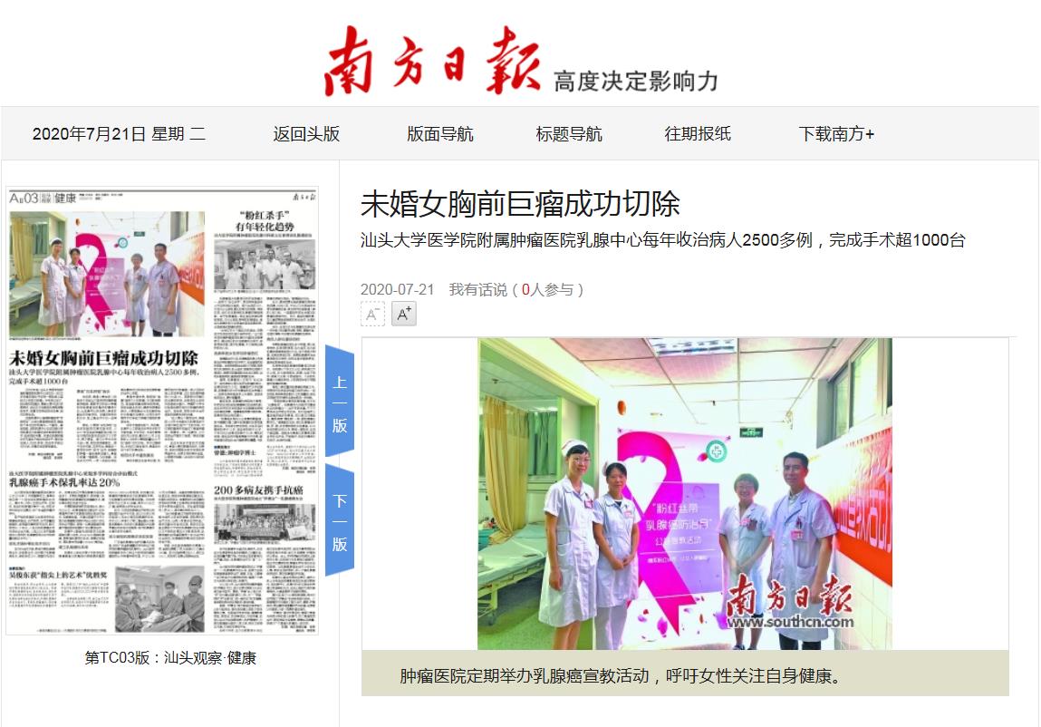 【媒体视角】南方日报:未婚女胸前巨瘤成功切除