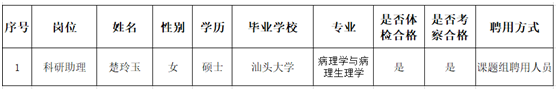 彭裕辉课题组公开招聘科研助理拟聘用人员公示