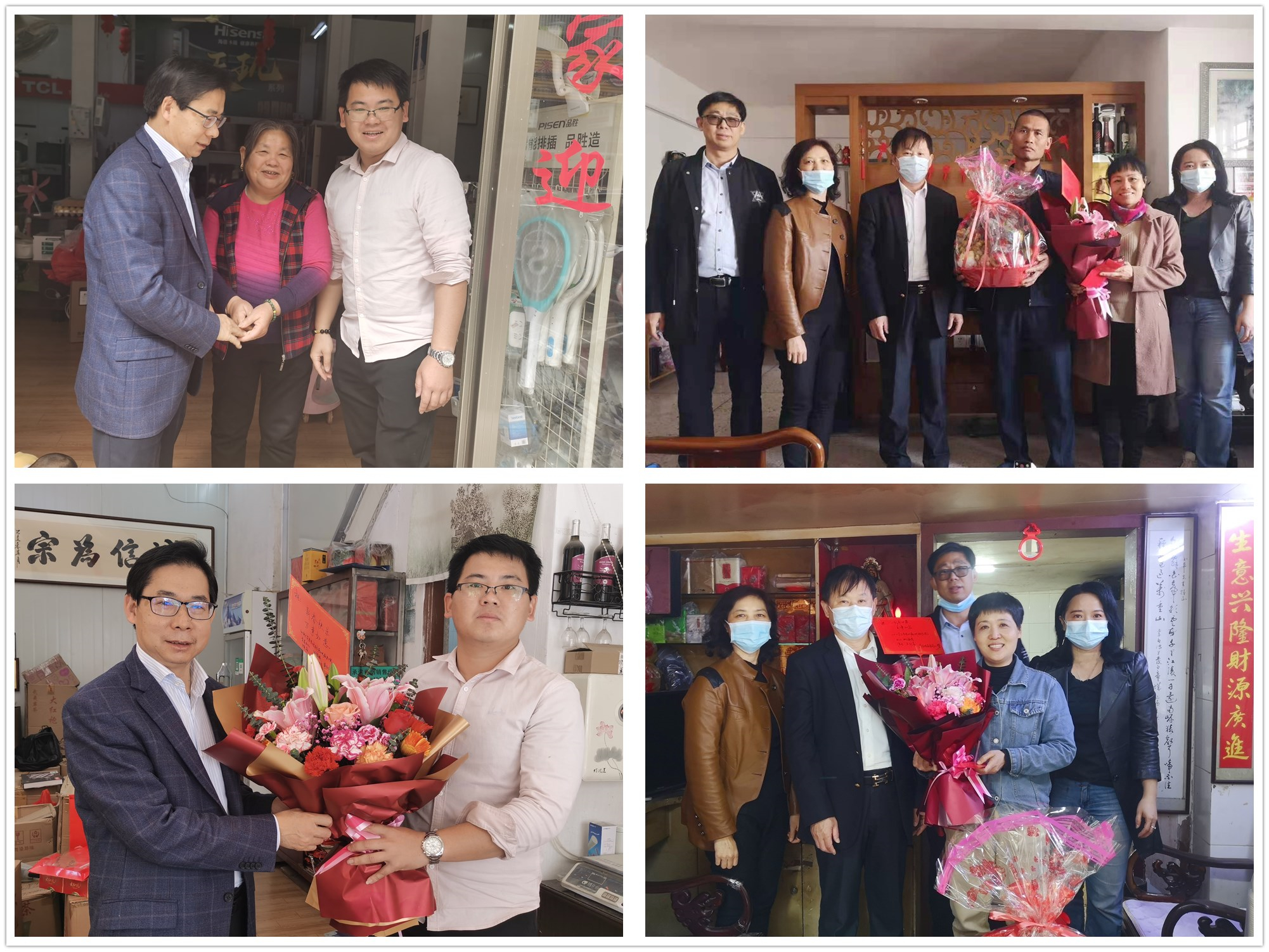 为关心关爱奋战在广州海关白云机场口岸支援现场采样工作的白衣战士,尽可能解除她们的后顾之忧,在春节来临之际,医院组织开展节前慰问工作。 2月9日上午,党委姚锡涛书记、王新家院长分别带领相关职能科室负责人,前往坚守疫情防控一线的陈柳伊、卓丹莉、翁镯韵3名医护人员家中,代表医院向其家属送去节日的关怀与问候,高度赞扬3名职工在关键时刻挺身而出、迎难而上的奉献精神,是全院干部职工学习的榜样,对家属们全力支持家人和医院工作表示敬意和感谢。医院的浓情关怀,让家属们深受感动,表示一定全力支持亲人工作,照顾好家庭,让亲人安心为疫情防控作出贡献。
