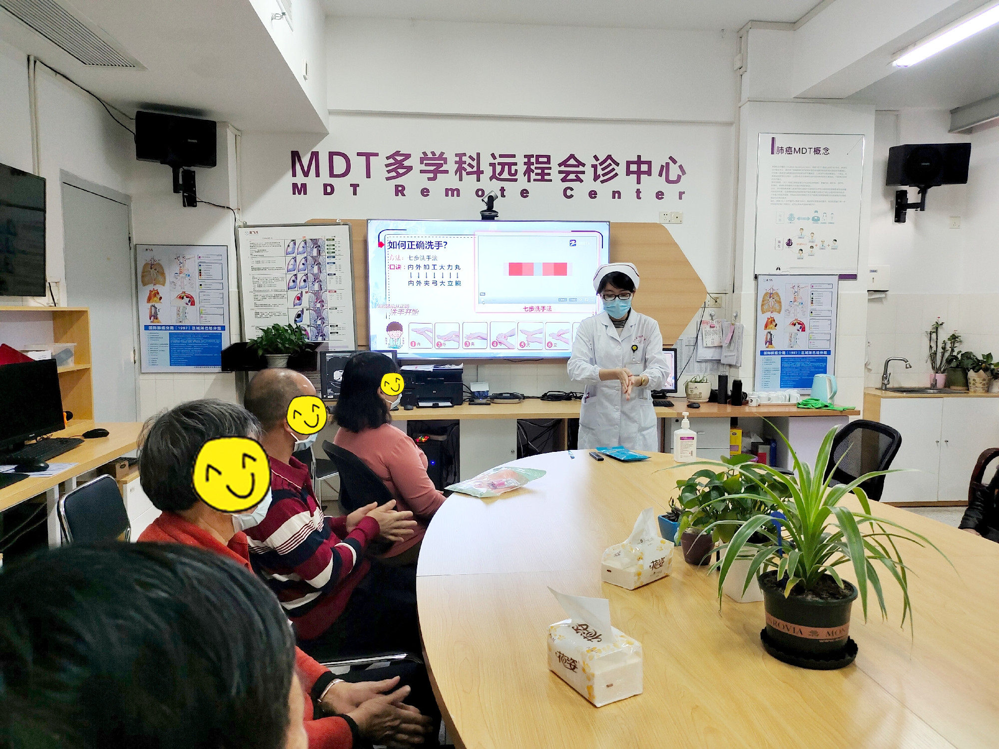 新春到,金牛辉,千家万户齐热闹;辞旧岁,迎新春,平安快乐喜相随。 近日,内科一区举办了“疫情防护,从我做起”健康教育以及慰问病人活动。 2月7日下午,陈丽东护士长向患者及家属科普新冠肺炎的相关知识。她介绍了新型冠状病毒的传播途径及感染后的临床症状,播放《如何正确佩戴口罩》的视频,讲解“七步洗手法”并现场进行“内外夹弓大立腕”示范指导,邀请现场的患者朋友们一起学习洗手。她告知患者及家属,春节期间尽量不去人员密集的地方,外出时佩戴口罩,保护自己也保护家人。