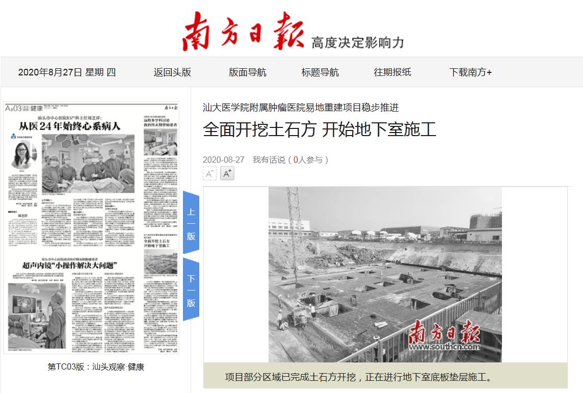 【媒体视角】南方日报:汕大医学院附属肿瘤医院易地重建项目稳步推进