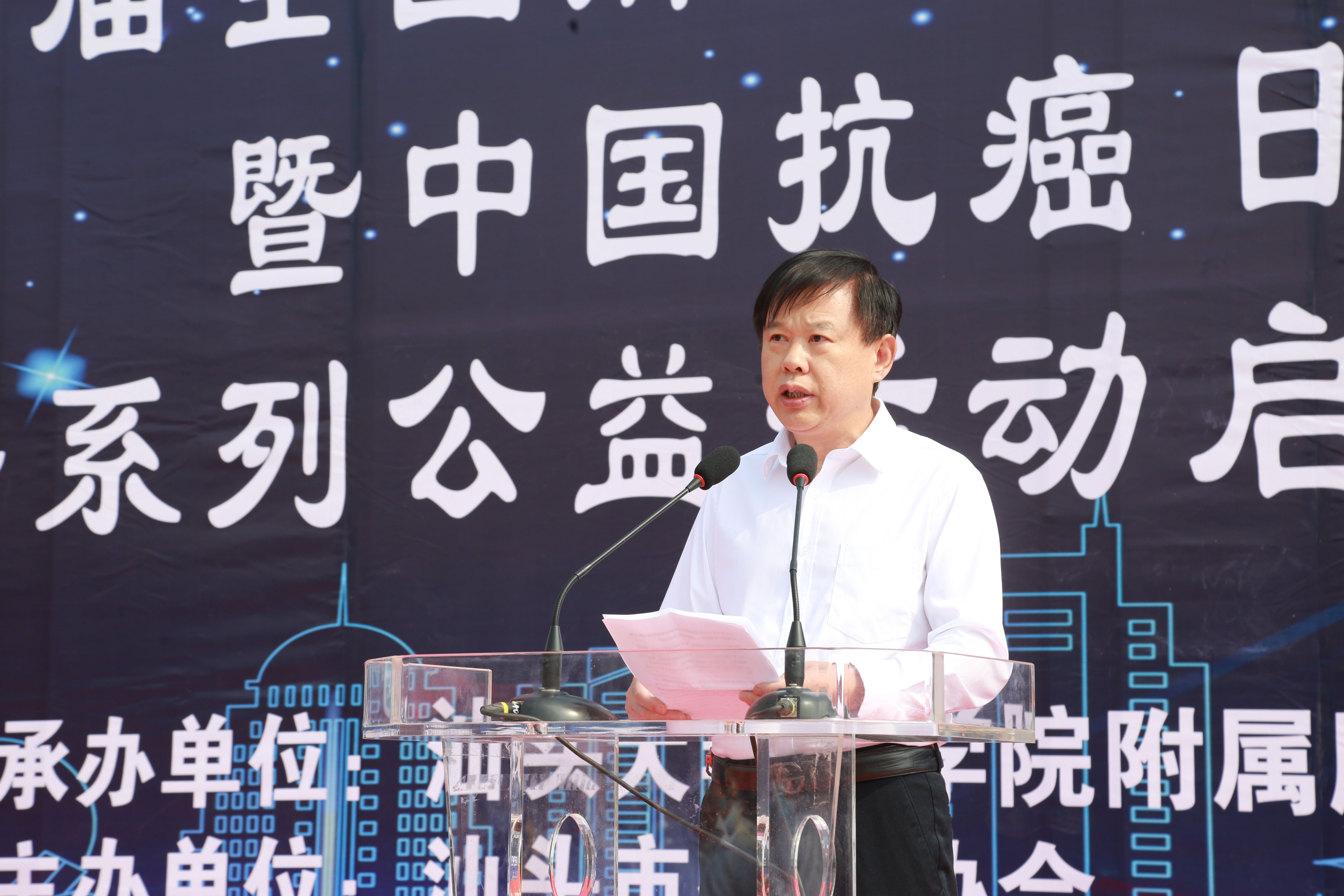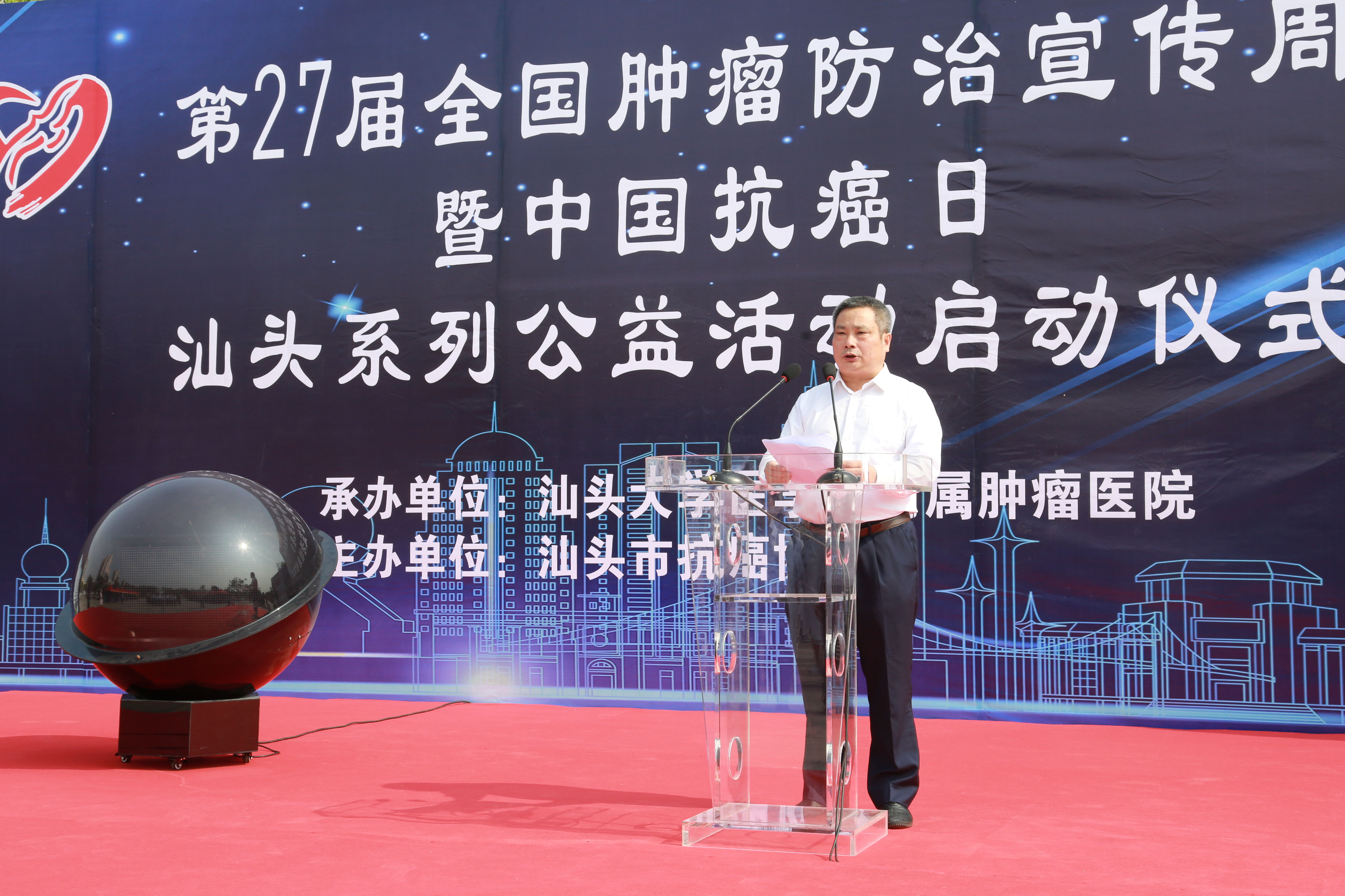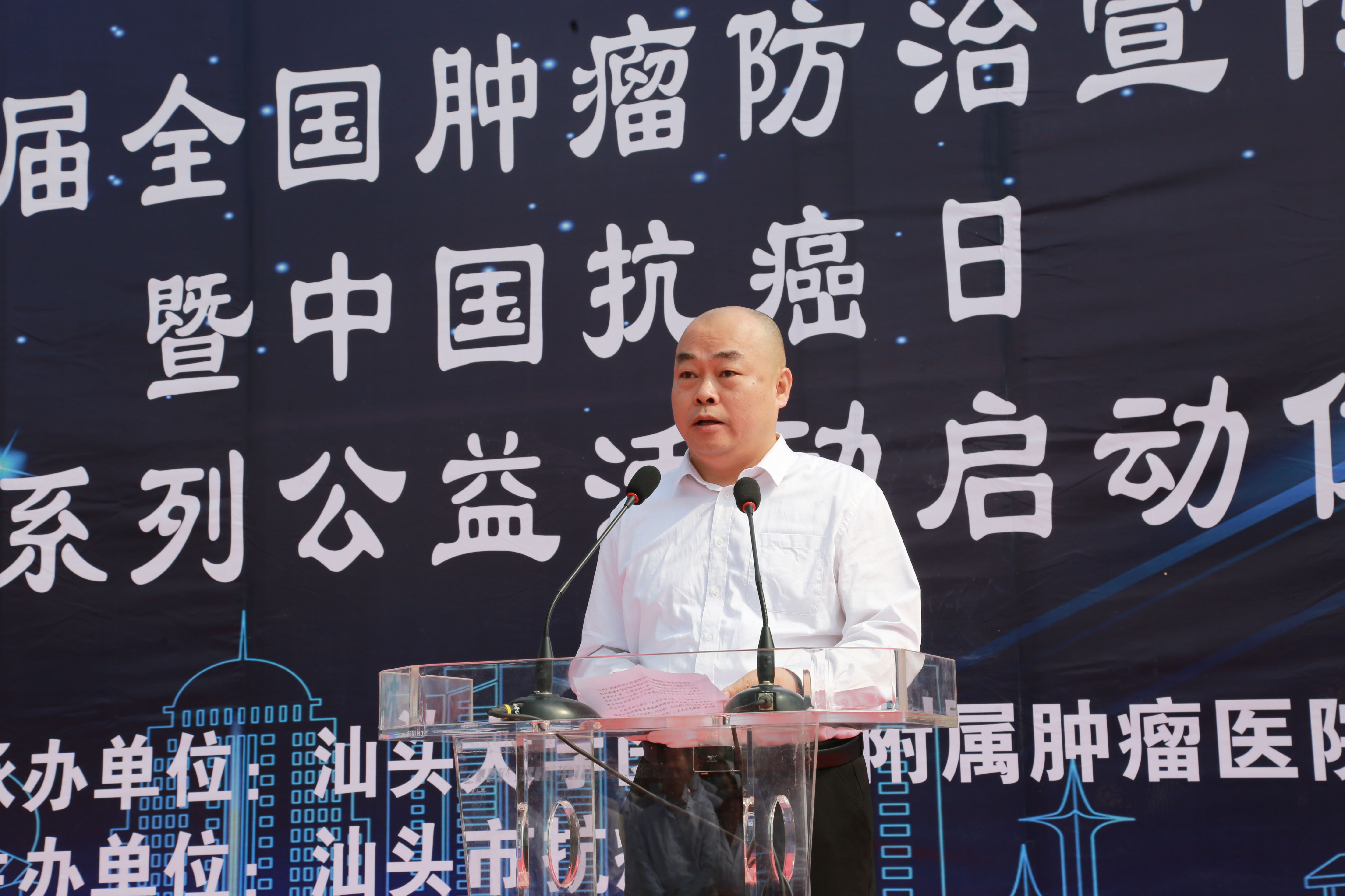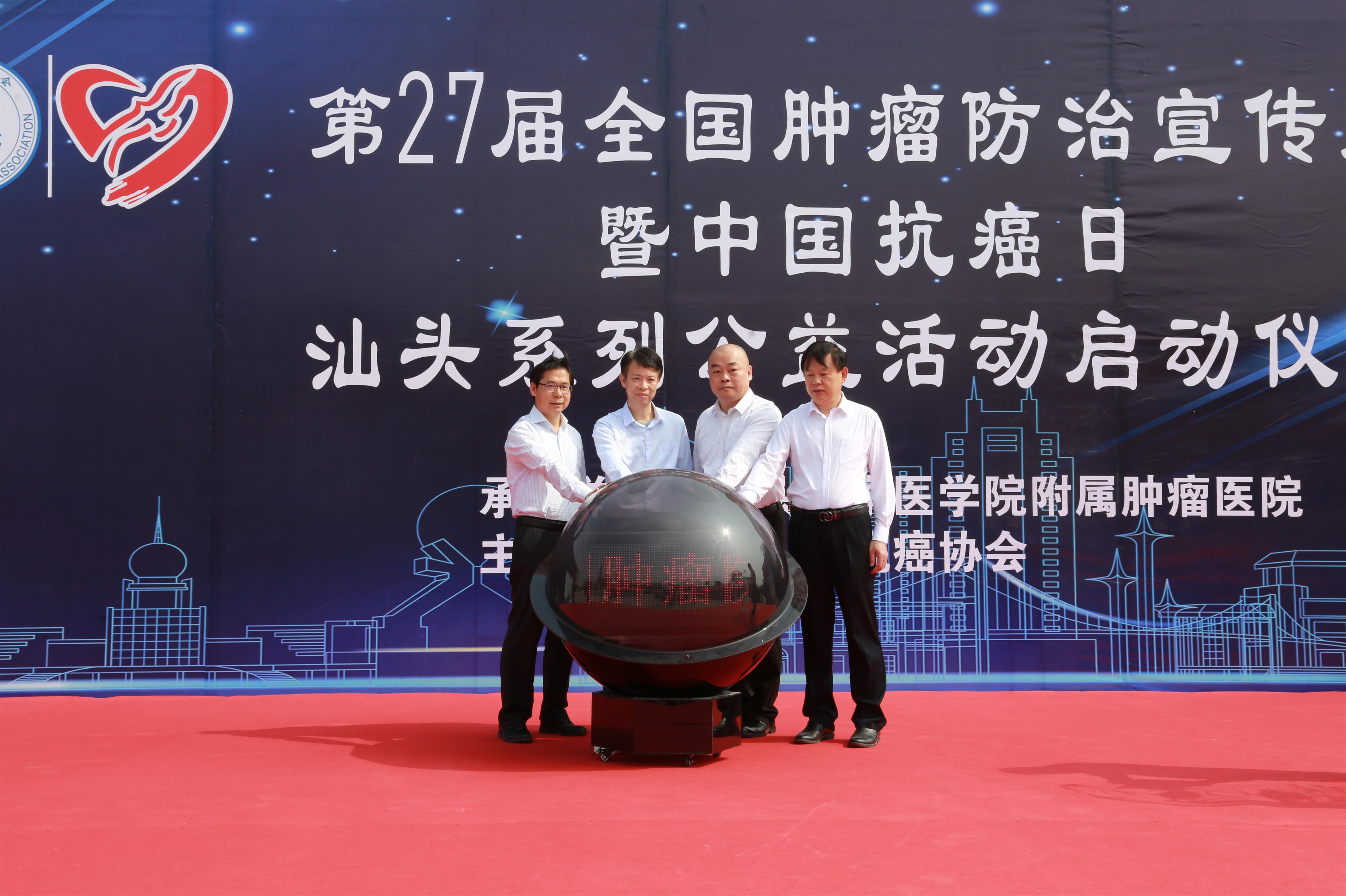 刘彦雄副局长对肿瘤医院精益求精,勇于创新的精神表示肯定,并希望肿瘤医院能继续发挥肿瘤专科优势,造福粤东地区广大百姓,为加快建设健康汕头再立新功。随后,刘彦雄副局长、林枫副院长和我院姚锡涛书记、王新家院长共同按下启动球,标志着肿瘤防治宣传周正式启动。