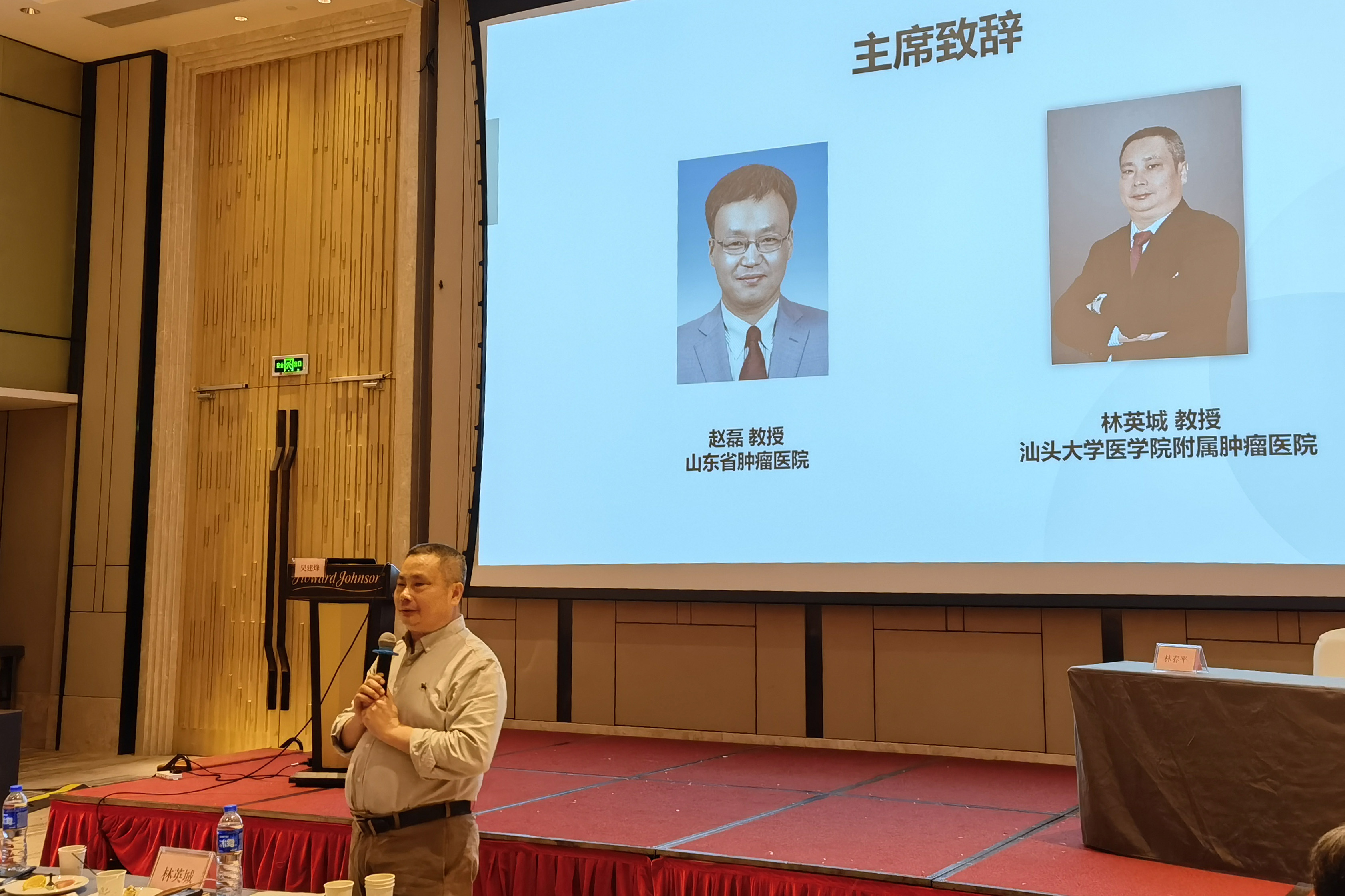 4月24日下午,由广东省抗癌协会姑息与康复治疗专业委员会粤东分会主办、我院及汕头大学医学院第一附属医院、龙湖医院承办的广东省抗癌协会姑息与康复治疗专业委员会粤东分会年会暨粤东肿瘤免疫治疗MDT菁英论坛在汕头市澄海区成功召开。 会议设立三个环节,分别是多学科诊疗模式(MDT)管理、免疫治疗及姑息治疗,邀请了省内外数十位肿瘤及安宁疗护领域的专家进行学术交流,并吸引了粤东地区众多医护人员积极参与。 我院林英城副院长和龙湖医院林菁副院长分别为大会致辞,对姑息医疗的发展及加强恶性肿瘤规范化诊疗的学习提出了殷切期望和要求,并向参加会议的各位专家学者表示热烈的欢迎。