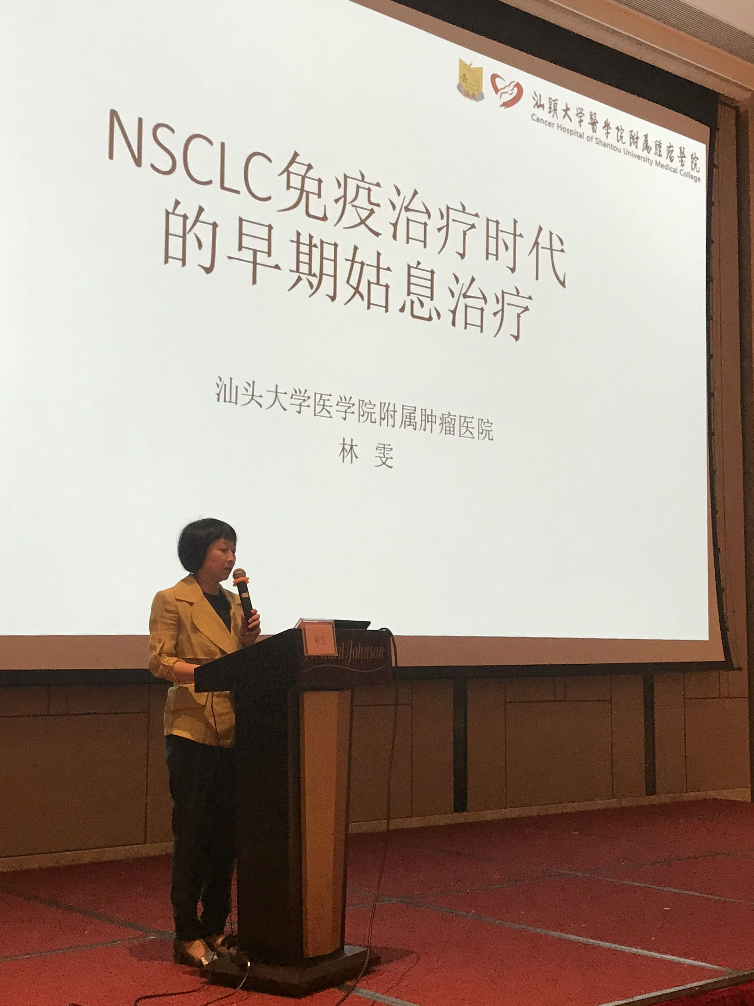 在免疫治疗环节,我院呼吸肿瘤内科林雯副主任阐述了非小细胞肺癌的早期姑息治疗。化疗时代的早期姑息治疗可延长肺癌患者的生存期,提高生活质量。而在免疫治疗时代,姑息治疗药物如阿片类止痛药、糖皮质激素、抗生素等可能对免疫治疗的疗效存在复杂的影响,林主任结合相关研究提出了许多亟待解决的问题,引发了与会嘉宾的热烈讨论。