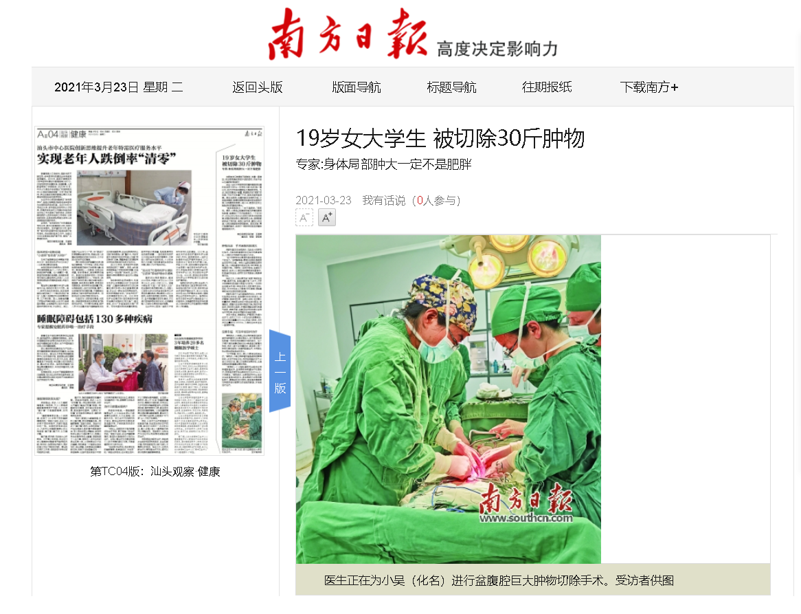 【媒体视角】19岁女大学生被切除30斤肿物 专家:身体局部肿大一定不是肥胖
