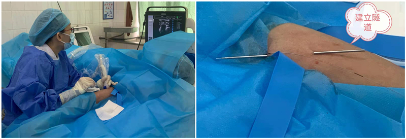 近日,我院静疗专科护士周纯华,成功为一例胃癌多发转移化疗的患者,在心电图定位B超引导下置入一条隧道式PICC,为患者接下来顺利完成化疗提供了安全舒适的血管通路保障,该技术的开展,填补了粤东地区在该领域的空白。 传统方式的PICC置管,导管皮肤出口靠近腋窝不利于敷料固定,同时患者肢体活动受到限制,为导管维护带来一定难度。新开展的隧道式PICC置管技术,是在常规PICC置管术的基础上,建立起一个皮下隧道,利用隧道针将PICC导管从血管穿刺口引出至导管皮肤出口。PICC导管在皮下隧道中穿行,使得血管穿刺口与导管皮肤出口错开一定的距离,可以形成一道天然的保护屏障。避免了血管穿刺口和导管皮肤出口相距太近,有效降低脱管、术后穿刺口渗血渗液等相关并发症的发生率,降低感染的风险及血栓的发生率,大大提高了患者带管的舒适性和安全性,造福患者。