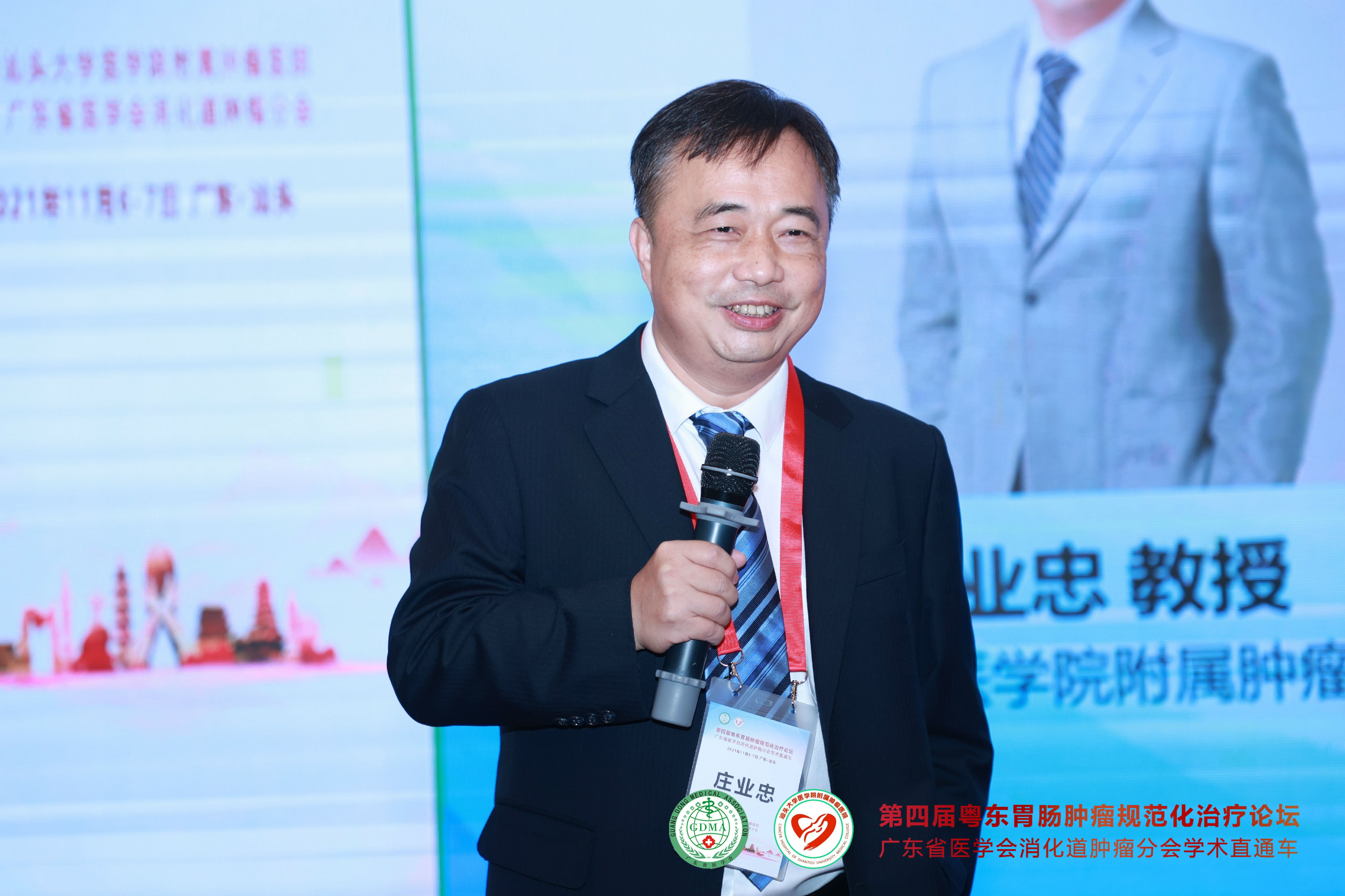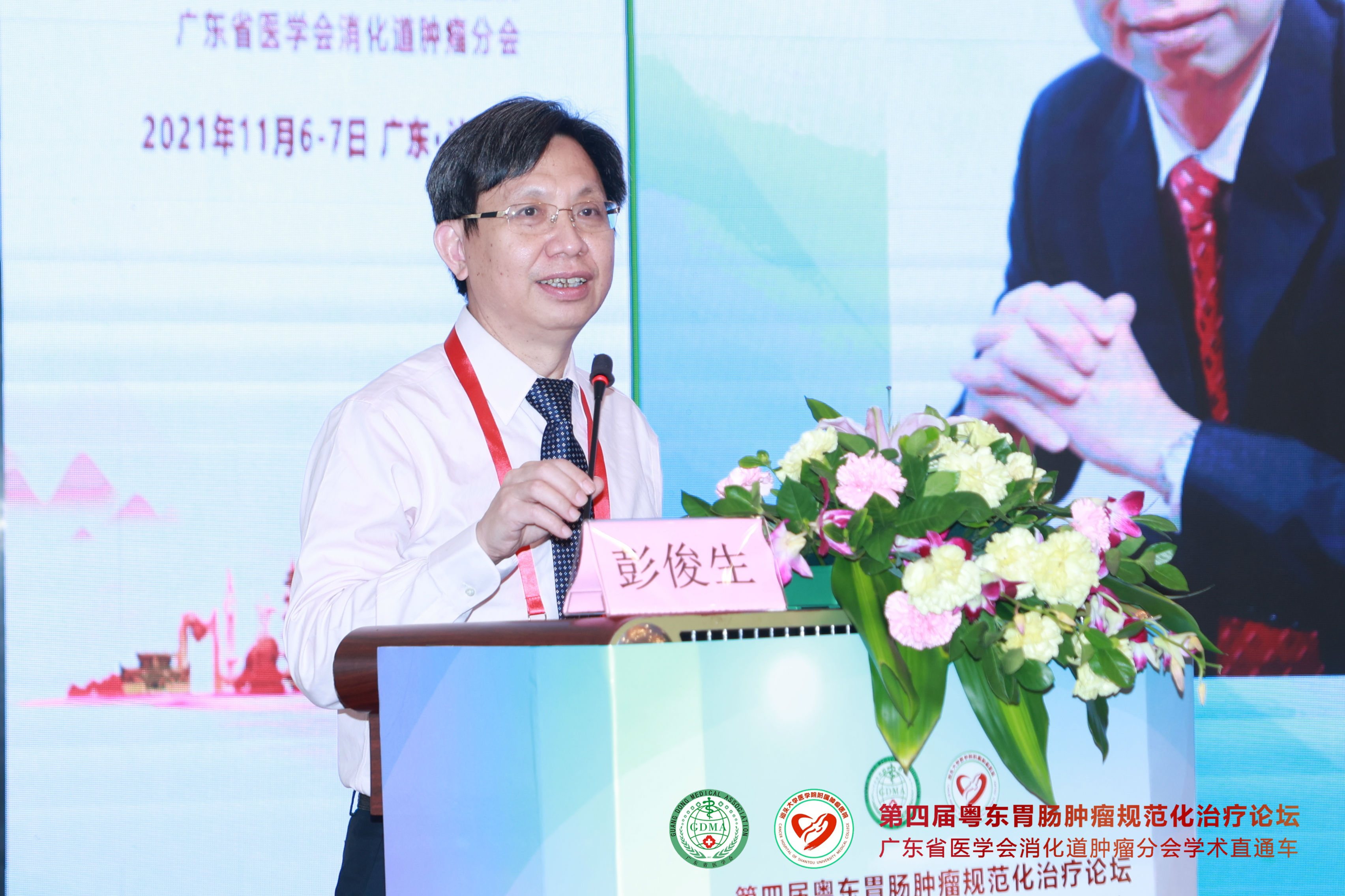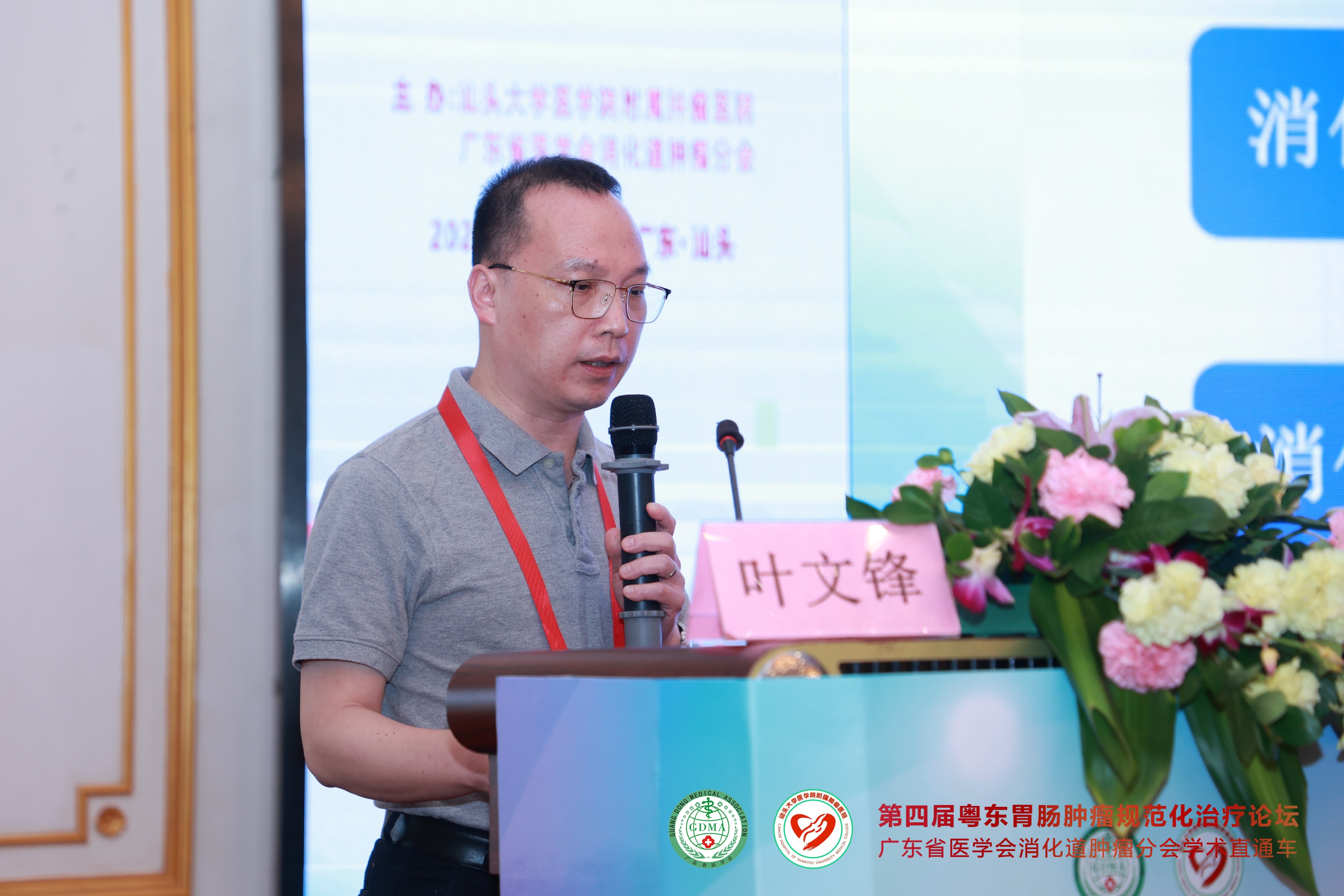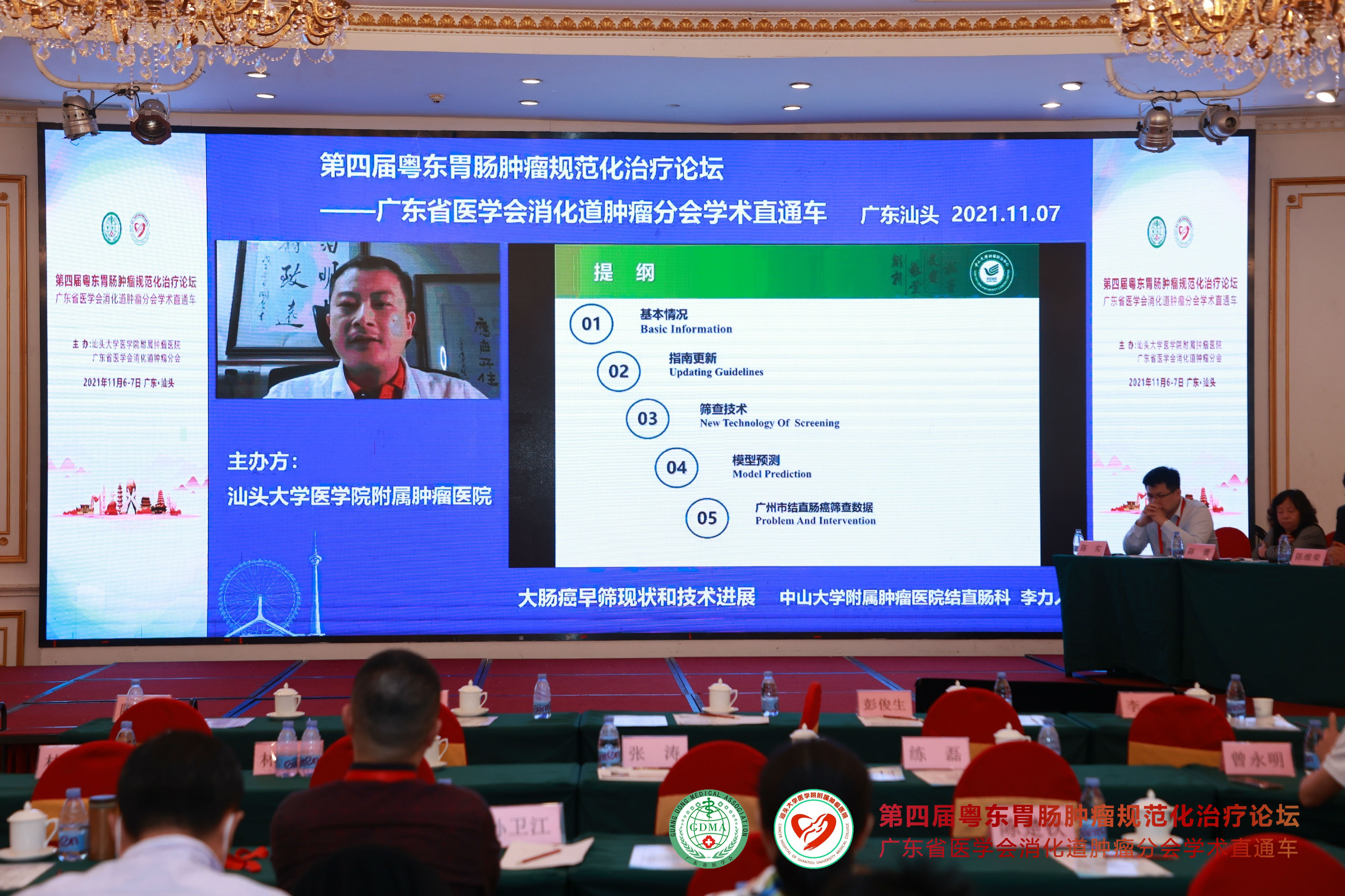 2021年11月7日,由 与广东省医学会消化道肿瘤分会联合主办的“第四届粤东胃肠肿瘤规范化治疗论坛—广东省医学会消化道肿瘤分会学术直通车”在汕头市金海湾大酒店隆重举行。广东省医学会消化道肿瘤分会主任委员彭俊生教授与我院党委姚锡涛书记担任大会主席,我院胃肠外科副主任庄业忠担任执行主席。 会议采用现场和网络直播“线上+线下”相结合的形式进行,为全国消化道肿瘤领域同道提供高质量的学术盛宴。会议期间全程严格落实疫情防护措施,进场人员需佩戴口罩并出示健康码,每个座位之间保持1米距离。 开幕式 上午8点30分,大会正式开始。我院党委书记姚锡涛首先发表讲话,他指出潮汕地区的胃肠癌发病率在所有恶性肿瘤中位于前列,通过学术交流可以进一步提高粤东地区胃肠肿瘤的诊治水平。彭俊生教授发表热情洋溢的致辞,勉励大家共同努力,为粤东地区消化道肿瘤患者提供更好的服务。庄业忠主任对远道而来参会的专家表示衷心的感谢并宣布会议正式开始。 姚锡涛书记发表讲话 彭俊生教授致开幕辞 庄业忠主任致辞 全体专家合影 第一议程 开幕式后,各项议程正式开始。第一议程由彭俊生教授讲授《腹腔镜胃癌根治术的质量控制》,通过介绍胃癌淋巴结清扫的要点、基本路径等,从而保证胃癌手术的同质化。 广东省人民医院马冬教授讲授《2021ASCO胃癌治疗进展》,通过盘点晚期胃癌各线治疗,给予我们最新的学术前沿分享。 中山大学附属肿瘤防治中心的丁培荣教授结合相关病例,为我们讲解了《肠癌免疫治疗新进展》,其中最令人印象深刻的是一例结肠癌术后肝多发转移的病人,其微卫星状态为MSI-H,仅通过免疫治疗获得2年的无病生存期,疗效显著,令人鼓舞。 广东省中医院刁德昌教授讲授《腹膜后巨大肿瘤的术前评估与手术策略》,通过一个个高难度的病例,显示了年轻专家的担当与责任,他强调腹膜后肿瘤应该以手术治疗为主,术前充分评估,术中做到整块切除、控制出血并保全重要脏器功能,这样才能最大程度提高治疗效果。 本节议程由李威教授、张涛教授、林菁教授和练磊教授主持,参与讨论的嘉宾就相关的议题展开激烈的讨论。 第二议程 第二节议程由汕大附一胃肠外科陈君填教授、曾永明教授,梅州市人民医院胃肠外科李恩教授和汕头大学附属肿瘤医院消化肿瘤内科副主任江艺主持。 远在四川省肿瘤医院的郑阳春教授通过网络直播的形式,根据自身经验体会,讲授《腹腔镜直肠癌根治术中左结肠动脉的解剖变异与保留技巧》,他主张在腹腔镜直肠癌根治术中保留左结肠动脉,以此改善结肠残端的血运,并且认为不会影响253组淋巴结的清扫,也不明显增加手术时间。 中山大学附属肿瘤医院邱妙珍教授为我们解读《结直肠癌改良三药方案的临床应用》,讲授在提高三药方案疗效的同时,如何更好地控制其不良反应。 汕头市中心医院王小忠教授结合自身经验,从清扫范围、入路及顺序等方面讲授《腹腔镜胃癌胰腺上区淋巴结清扫体会》,他认为胃癌胰腺上区淋巴结的清扫要做到“吊肝、断肠、显露好”,遵循血管导向,层面优先的原则,并且术前要进行CTA评估。 梅州市人民医院吴祖光教授强调了胃癌手术中淋巴结分拣的重要性,他认为规范的淋巴结分拣是开展胃癌规范化诊治的先决条件。要做到胃癌的规范化治疗,就必须成立专门的分拣团队,标准化分拣流程,做好质量控制。 第三议程 第三节议程由庄业忠、陈维荣、陈蕾及陈实四位专家主持。 中山大学附属第六医院杨祖立教授讲授基于根治、保功能的早期胃癌手术方式的选择,他认为改善胃癌患者预后最重要的是要做到早诊早治。 李力人教授同样以线上的形式,讲授了大肠癌的筛查方法以及高风险人群的甄别,并强调要提高早癌筛出率,就必须提高人民群众的防癌意识。 叶文锋教授分析了消化道肿瘤患者营养不良的原因,以及围术期营养支持的作用等。围术期全程营养管理,可改善肿瘤患者的营养状态,提高生存期。 李初俊教授讲授了胃癌的筛查策略,并推荐对非侵入性检查筛查出的高危人群进行内镜检查。 第四议程 第四节议程由彭云恒、李东升、章斐然三位专家主持。 蔡高阳、谢澳斯、林佳锐三位医生带来了精彩的病例分享。 其中最精彩的莫过于林佳锐医生的病例分享,一位年轻的妈妈,初诊乙状结肠癌伴肝多发转移,经我院多次多学科会诊讨论后,采取术前转化治疗使肿瘤降期,随后进行原发灶+转移灶根治性切除,术后辅助化疗的治疗模式,疗效显著。1年过去了,这位年轻妈妈仍然处于无瘤状态,续写生命的奇迹,不仅展示了多学科团队的重要作用,同时也彰显医者仁心的温情。