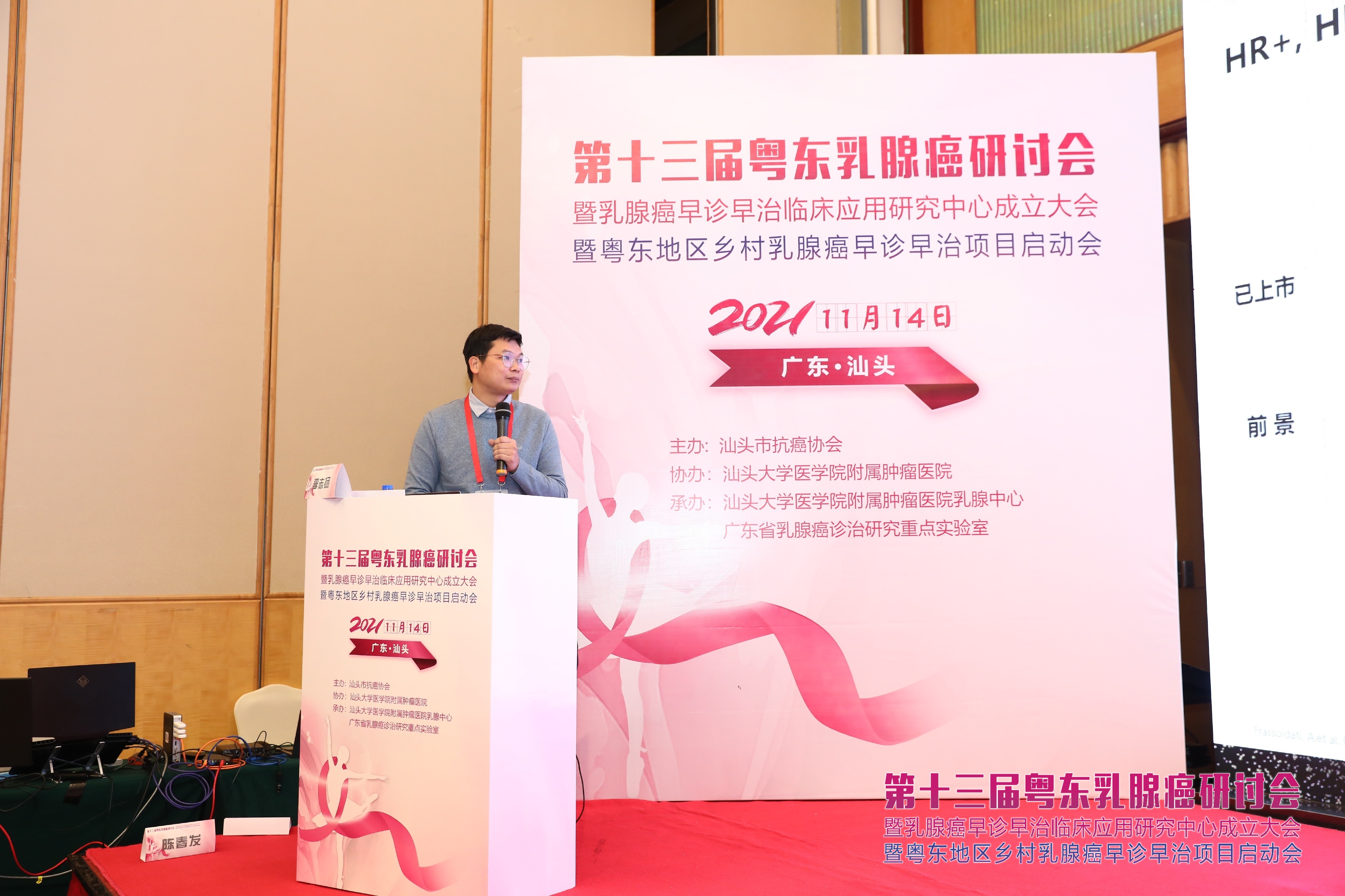 2021年11月14日,在做好疫情防控的基础上,由汕头市抗癌协会主办, 协办, 乳腺中心和广东省乳腺癌诊治研究重点实验室共同承办的“第十三届粤东乳腺癌研讨会暨乳腺癌早诊早治临床应用研究中心成立大会暨粤东地区乡村乳腺癌早诊早治项目启动会” 以线上和线下结合的形式在汕头市君华海逸酒店成功举行。本次大会的主题为“聚焦前沿、协作创新”,注重乳腺癌的研究新进展,共同探讨在精准医学时代,如何将乳腺癌基础与应用最新进展及成果进行转化等相关问题。来自粤东各大医院的医务人员、肿瘤研究工作者及医学生线上及线下共计上千名学员参加了此次学术盛宴,线上及线下均气氛活跃,专家与学员讨论激烈。 开幕式上,抗癌协会理事长杨伟教授与汕大医附属肿瘤医院李从铸副院长发表致辞,对与会专家的到来表示欢迎。大会主席吴俊东主任及曾德副主任主持本场大会。