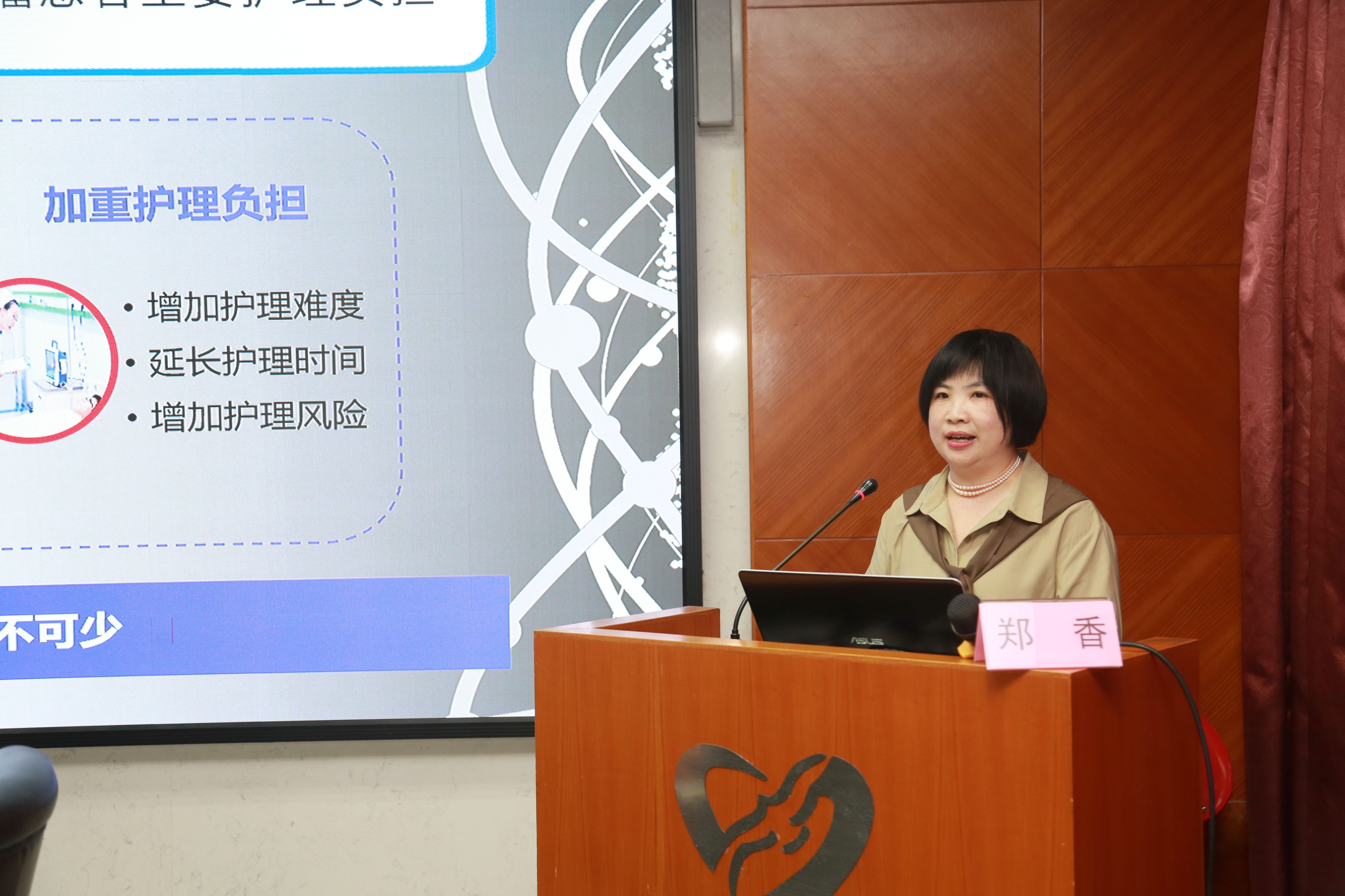 专题讲座首先由王逸如主任进行授课,主题为《肿瘤患者延续护理实践模式介绍》。王逸如主任通过对我院开展的四个延续护理实践模式进行介绍,并详细讲解了在开展过程中遇到的困难及解决方案,以图片和数据的方式展示了延续护理给患者带来的收获和对护理人员自身职业价值感的提升,现场反应热烈。