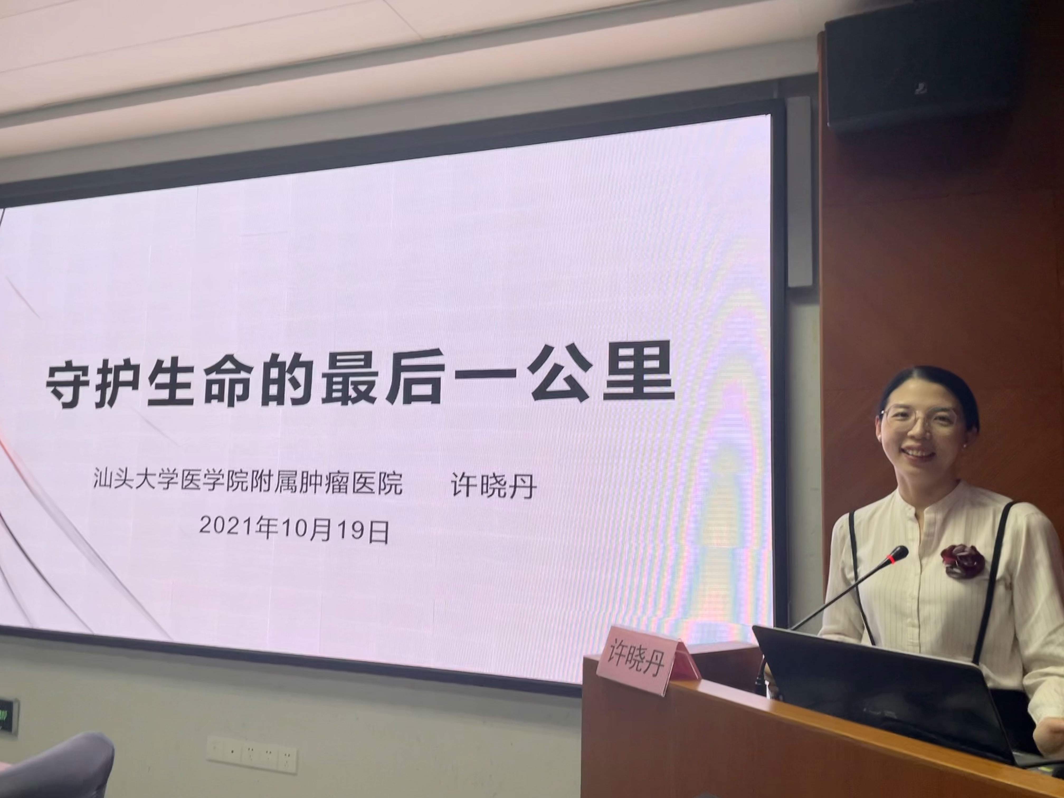 接着由我院放一区副护士长许晓丹以《安宁疗护—守护生命的最后一公里》为主题,介绍了安宁疗护的起源、发展及定义,并分享了一例结肠癌术后全身多发转移患者的安宁照护个案,提高了在场护理人员对安宁疗护的认识,让大家深切体会了安宁疗护对所有终末期患者的重要性。
