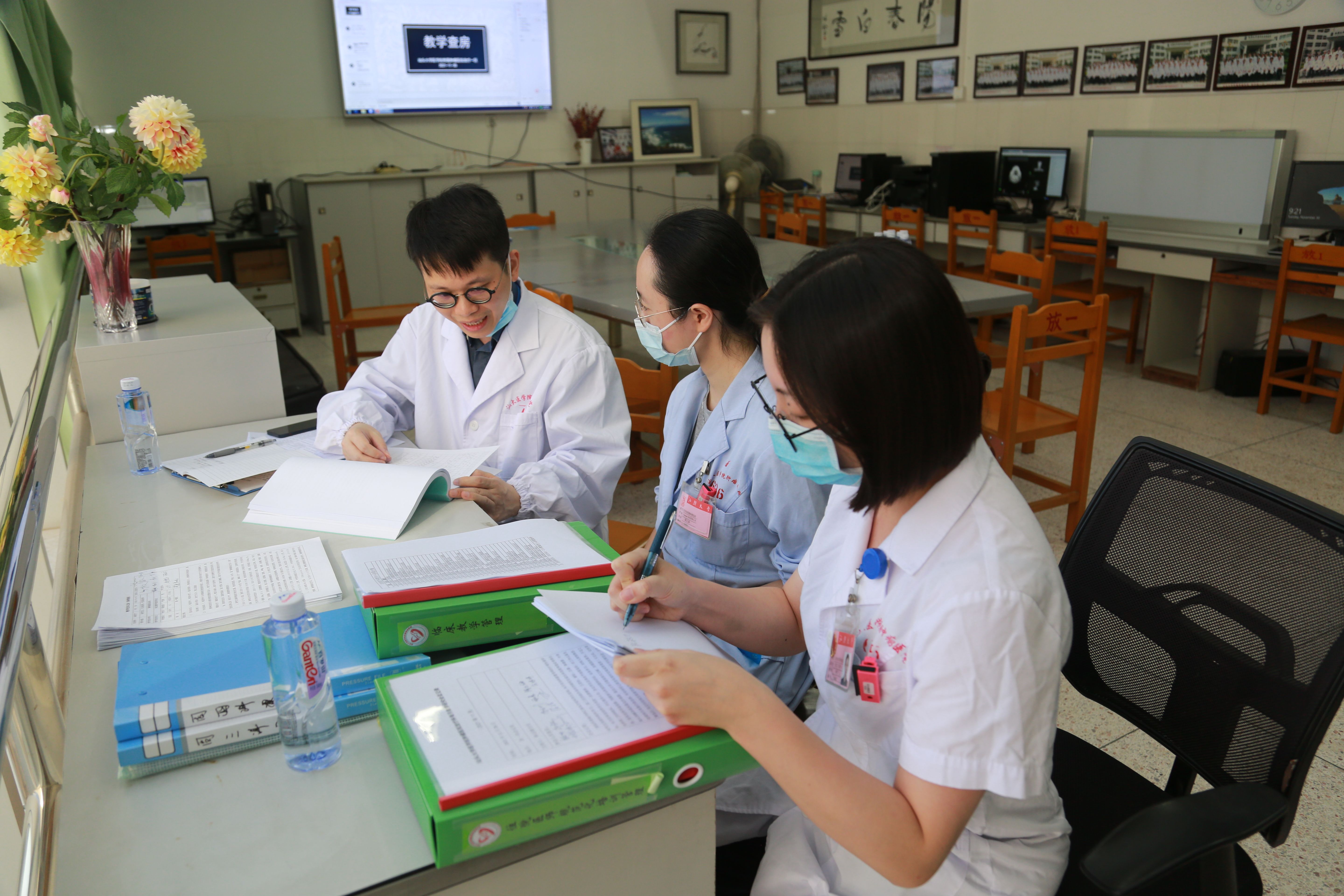 专家现场评估采用分头实施、集中反馈形式进行。刘宜敏主任负责教学查房和基地主任、教学主任访谈,文碧秀主任负责技能带教评价和师资、学员访谈,任陈博士和管理组专家王丹教授在肿瘤医院和附一主基地同时开展台账检查及病历书写质量评价,我院指定专人负责跟进检查工作。反馈会上专家指出,我院住培工作台账条理清晰,老师与学生对前沿知识掌握较好,每周四基地主任都会带领师生进行全英的lad meeting活动,但也存在薄弱环节,主要表现在师资绩效分配不足、分层递进培训与考核欠佳、教学活动组织缺乏整体设计、病历书写未体现教师修改痕迹等。