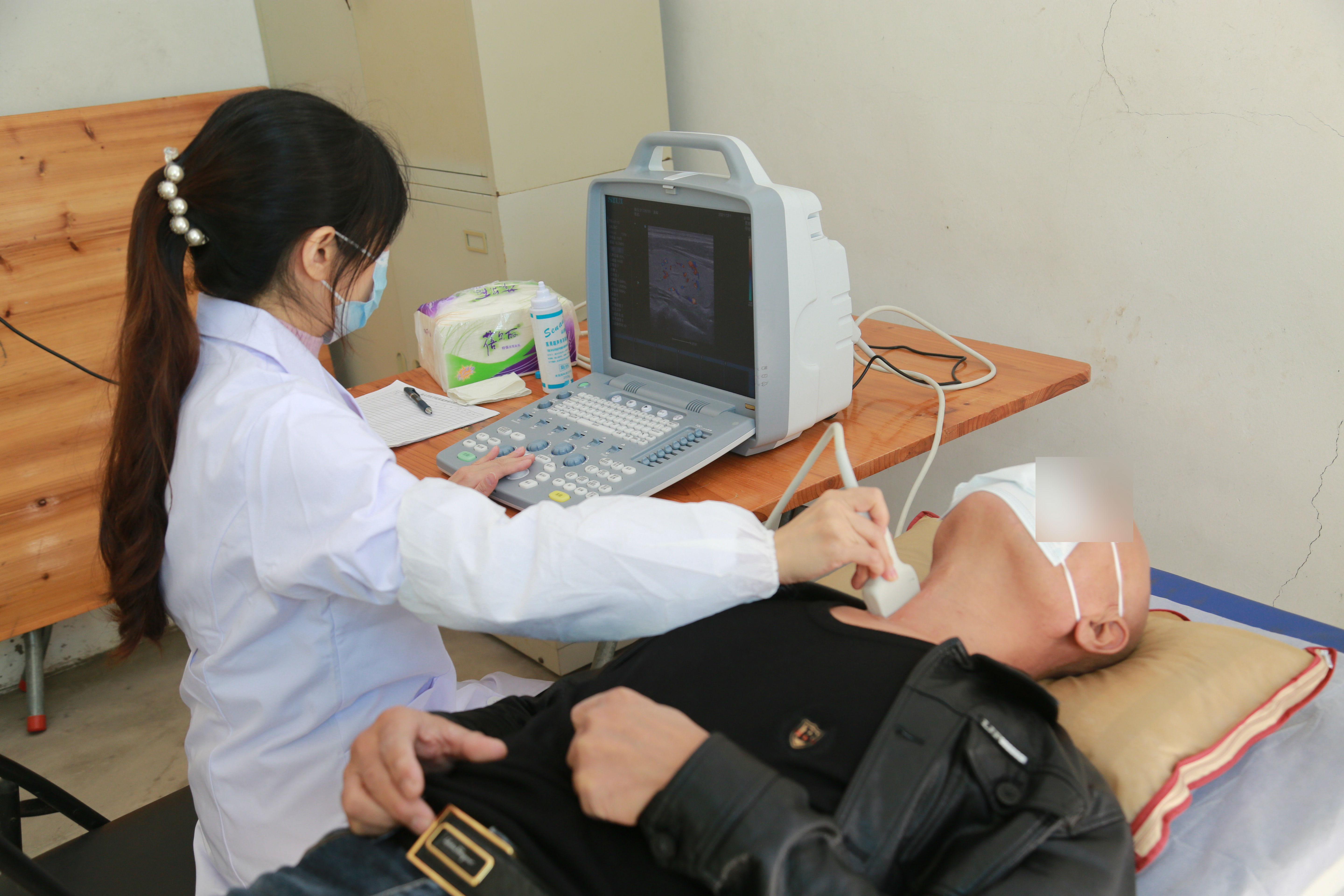 在随后的义诊活动中,我院抽调外科、内科、放射科、护理等多名医务专家为前来参加活动的村民提供免费CT、免费B超、血压测量、血糖监测、专科咨询等项目,并通过发放健康宣传单、现场讲解等形式进行健康知识的科普宣传,提高村民对肿瘤等疾病的防治意识和能力。