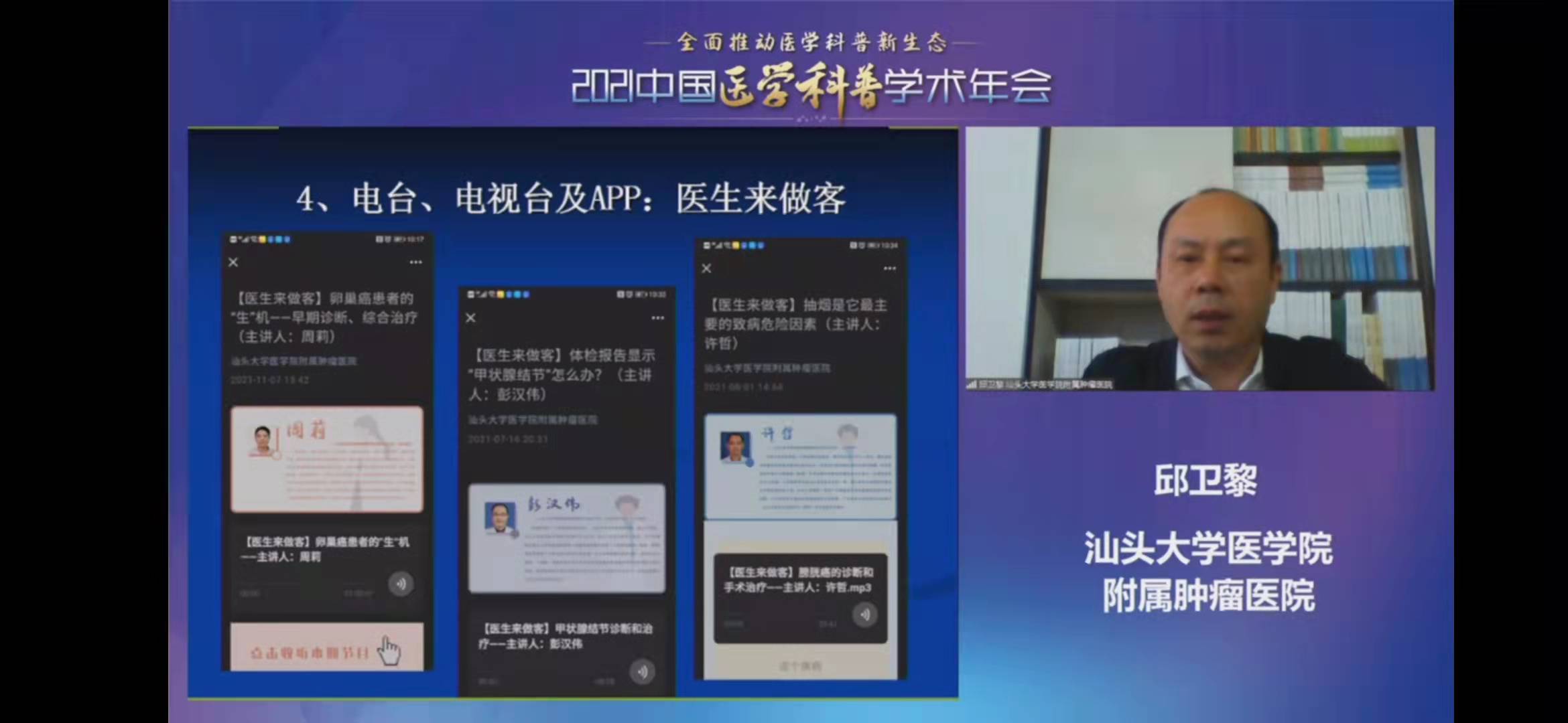 我院副院长邱卫黎主任医师应邀在2021 中国医学科普学术年会线上授课