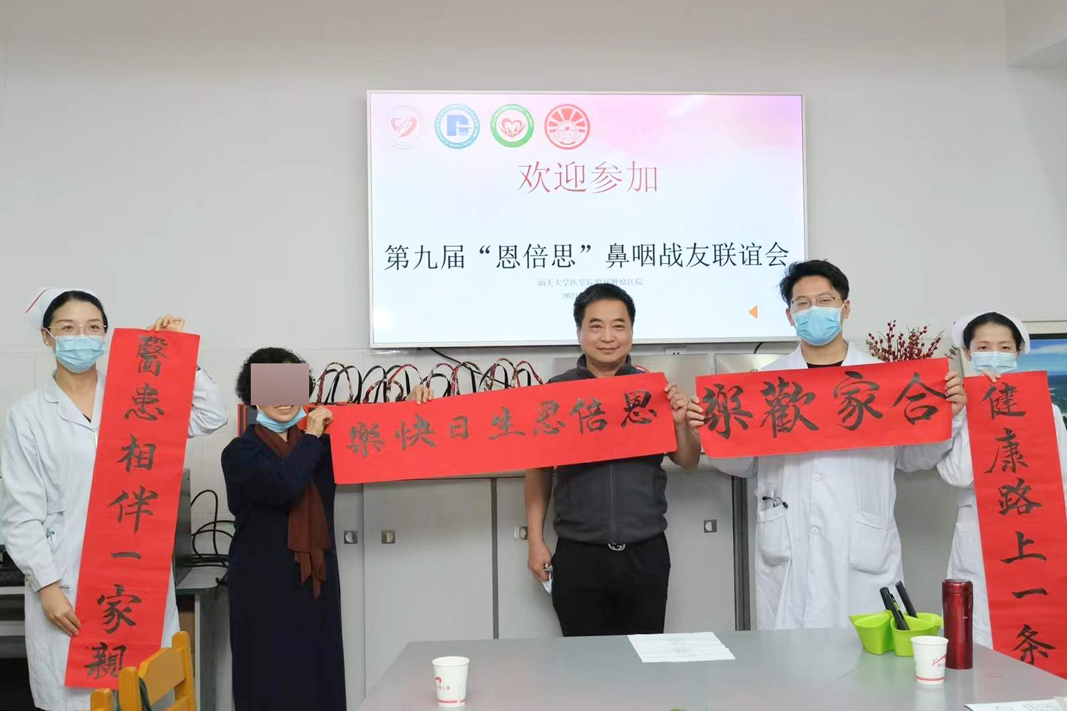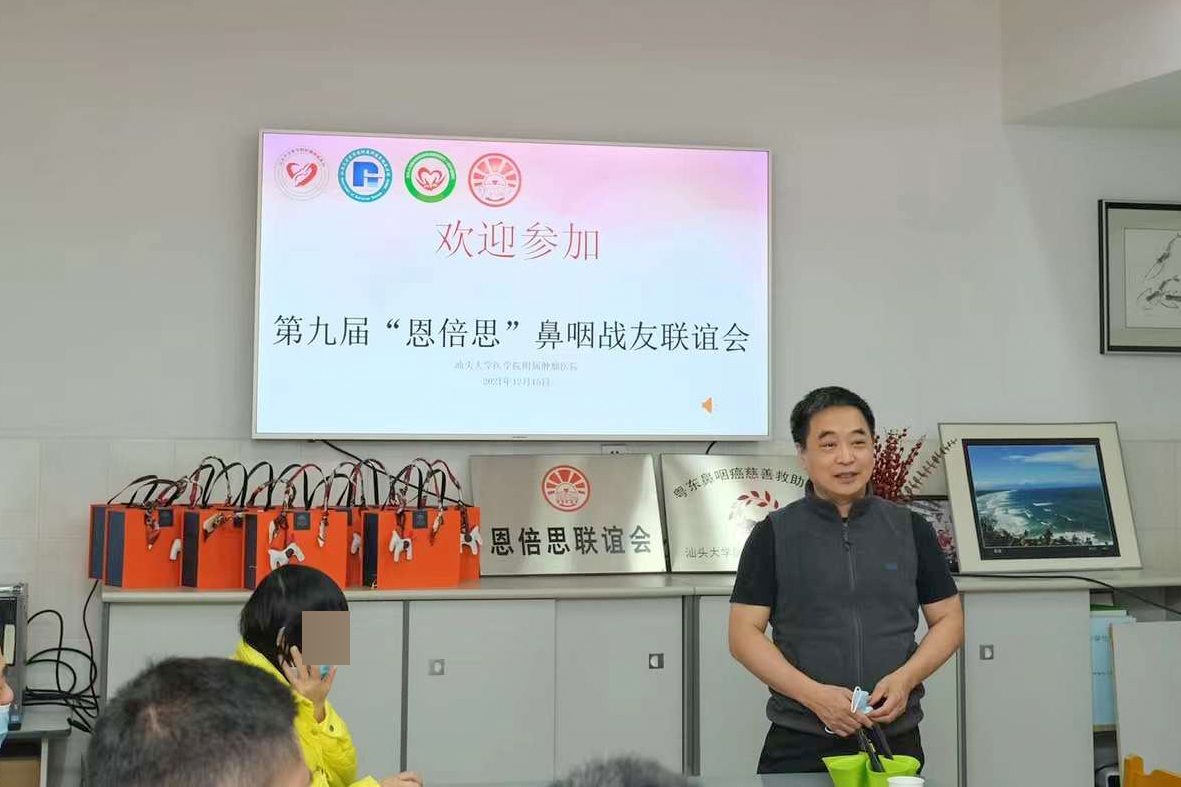 2021年12月15日,我院放疗科筹办的第九届“恩倍思”战友联谊会在 放疗一区示教室如期举行。 当前疫情防控仍刻不容缓,因此本次联谊会决定将住院的鼻咽癌患者作为主要活动对象,同时也邀请了十位汕头本地的老战友携48小时内核酸报告前来赴约。