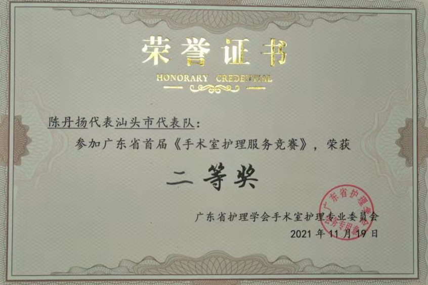 手术室护士陈丹扬作为汕头代表队的成员之一参加了本次比赛。在与我市其他医院6名选手的共同努力下,团队对作品进行推敲、修改,不断完善细节,升华作品主题。比赛当天,选手们凭借生动有趣的表演和扣人心弦的情节,以情景剧《特别的爱给特别的你》在全省27支队伍中脱颖而出荣获二等奖!