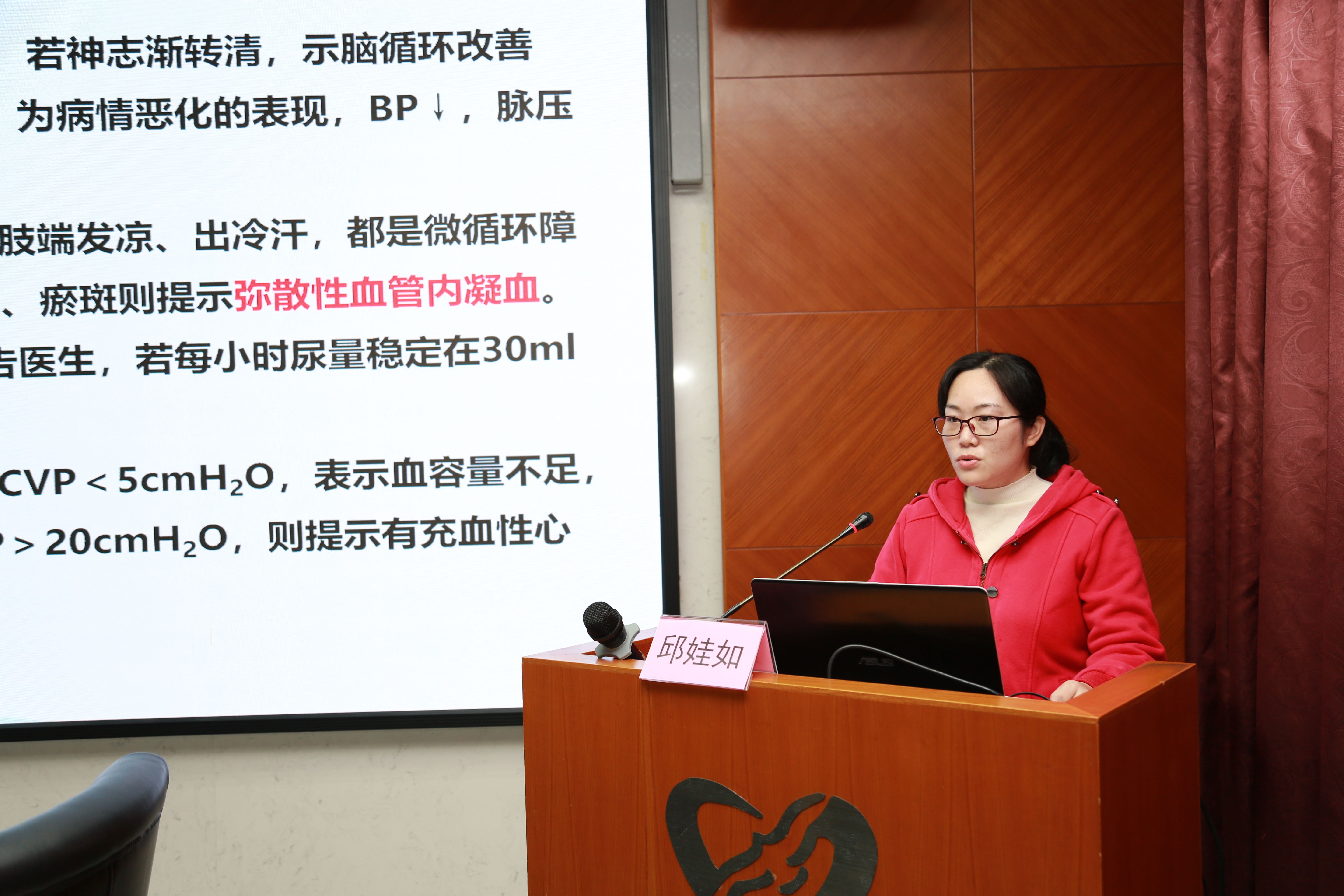 邱娃如主管护师以《感染性休克的护理》为题,生动形象地讲述了护理感染性休克患者的重点和关键。