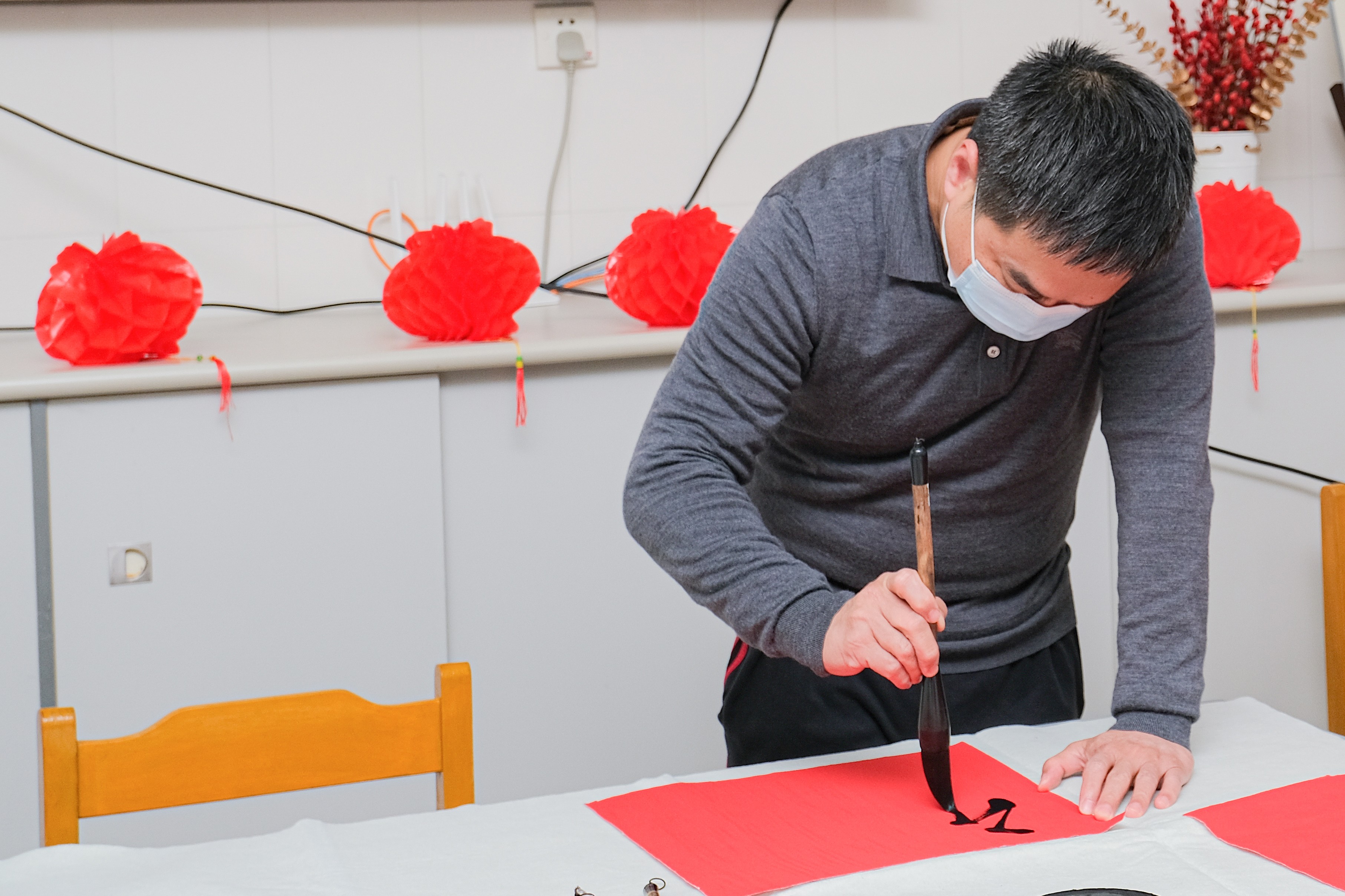 当天,医院党委副书记、大放疗科主任林志雄亲临现场,并与康复的鼻咽老战友朱姨一起亲笔题“福”字,为大家送上新春祝福。医护人员还准备好了满满的一桌春节饰品,邀请了住院的患者及家属前来共同制作迎新挂件,一同参与科室的张灯结彩。