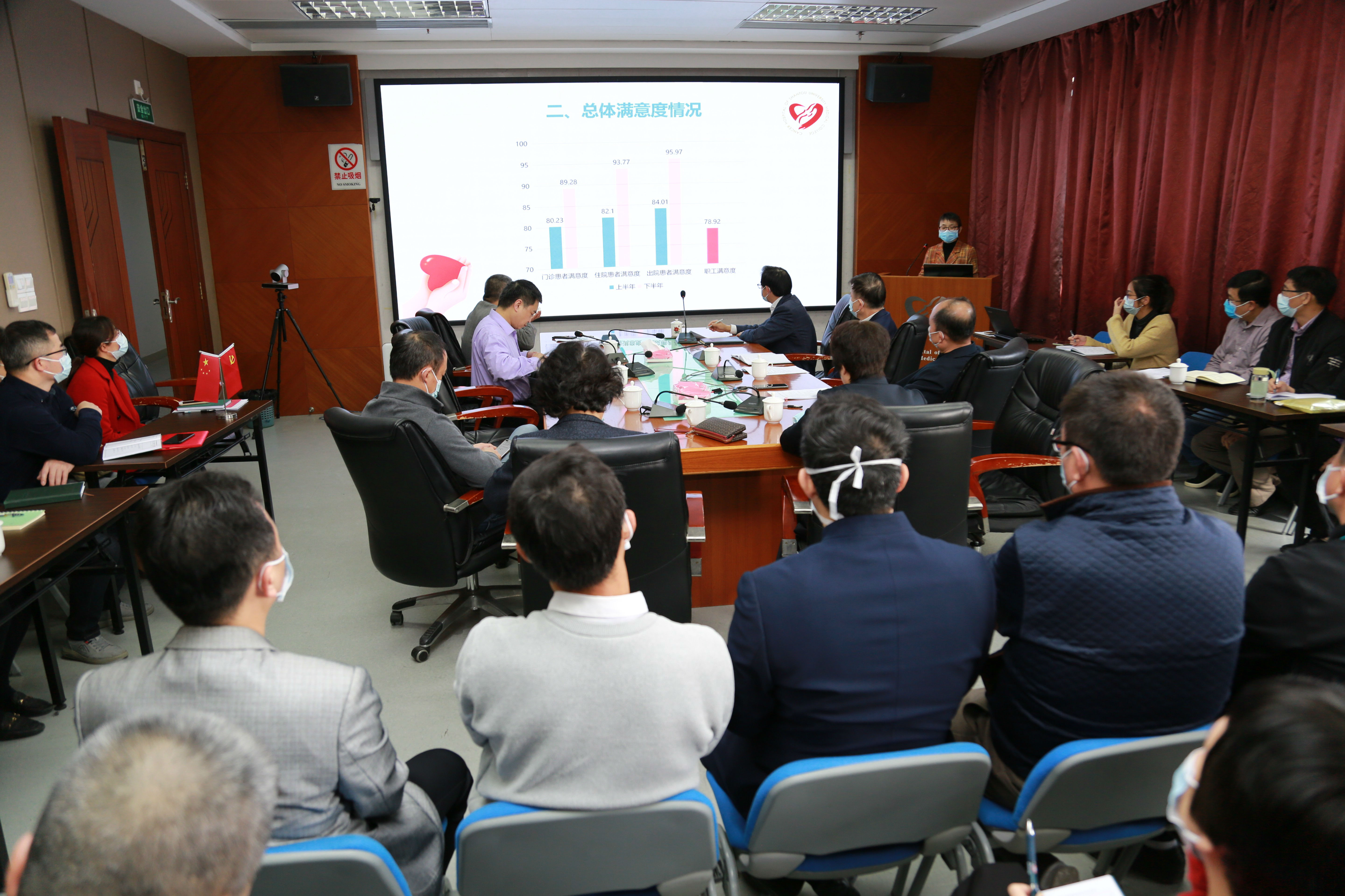 会上,纪检监察审计室主任袁云通报我院2021年第三方满意度的调查结果,就问卷调查发现的问题提出针对性的改进建议。
