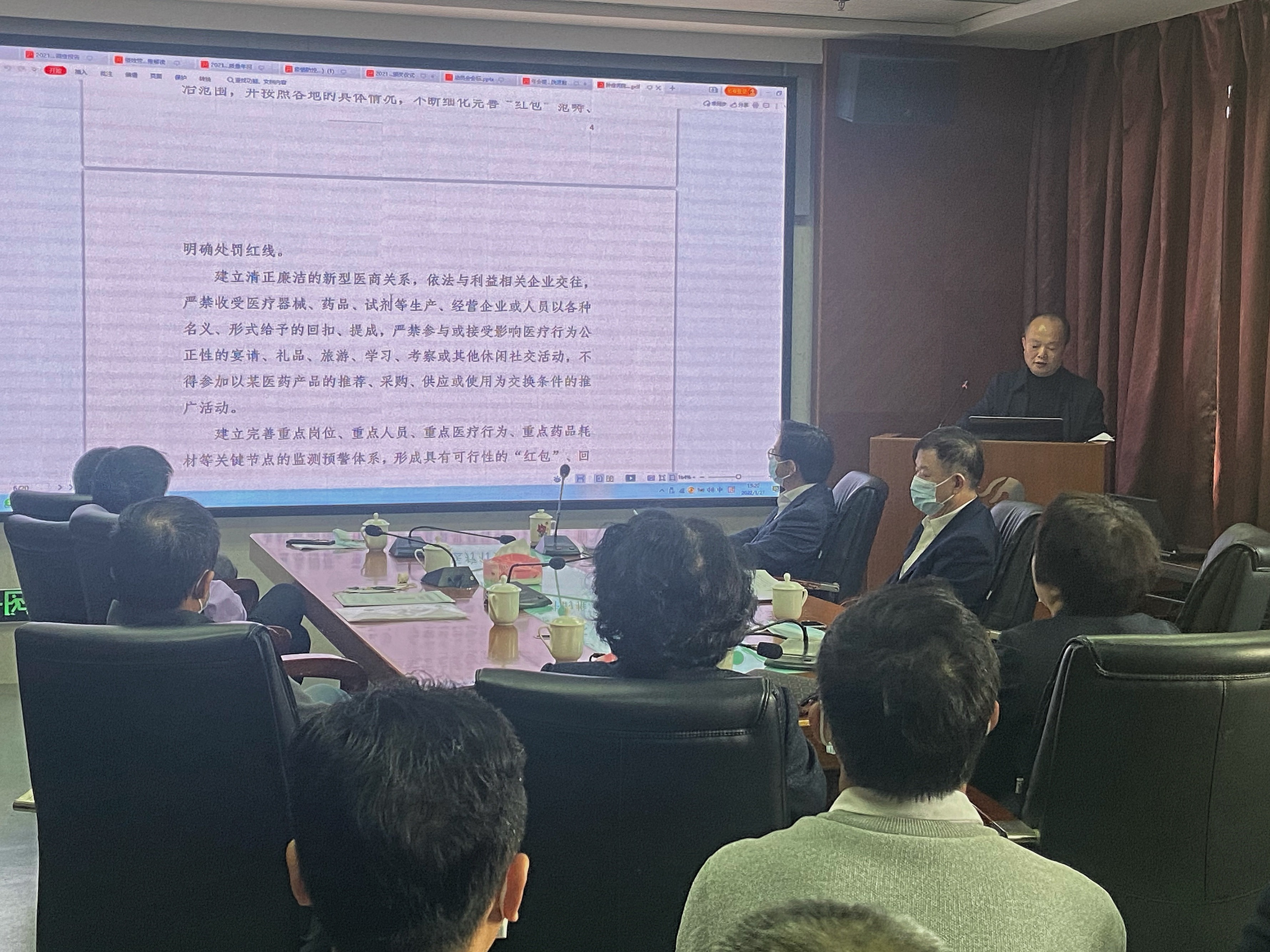 纪委书记林大静解读我院《廉洁从业行动计划实施方案(2021-2024年)》,结合国家九部委出台的《纠正医药购销领域和医疗服务中不正之风工作要点》,要求全院干部职工要有政治敏锐性和鉴别力,严格履行一岗双责,贯彻落实好廉洁从业计划的各项工作,做实做细医德医风建设,切实做到严管厚爱。 院长王新家对廉洁从业专项行动进行动员讲话,他指出,行风建设事关行业形象和医疗卫生事业的健康发展,直接关系到人民群众的切身利益,一刻也不能懈怠,对于促进我院高质量发展、增强患者和家属的就医体验和提升患者满意度具有重大意义,各科室各部门要深刻认识到此次专项行动计划的重要性,把推进廉洁从业行动作为医院发展的重点任务和长期任务,持续保持对“红包”、回扣等行业不正之风的高压打击态势,为“十四五”期间医院高质量发展开好局、起好步。