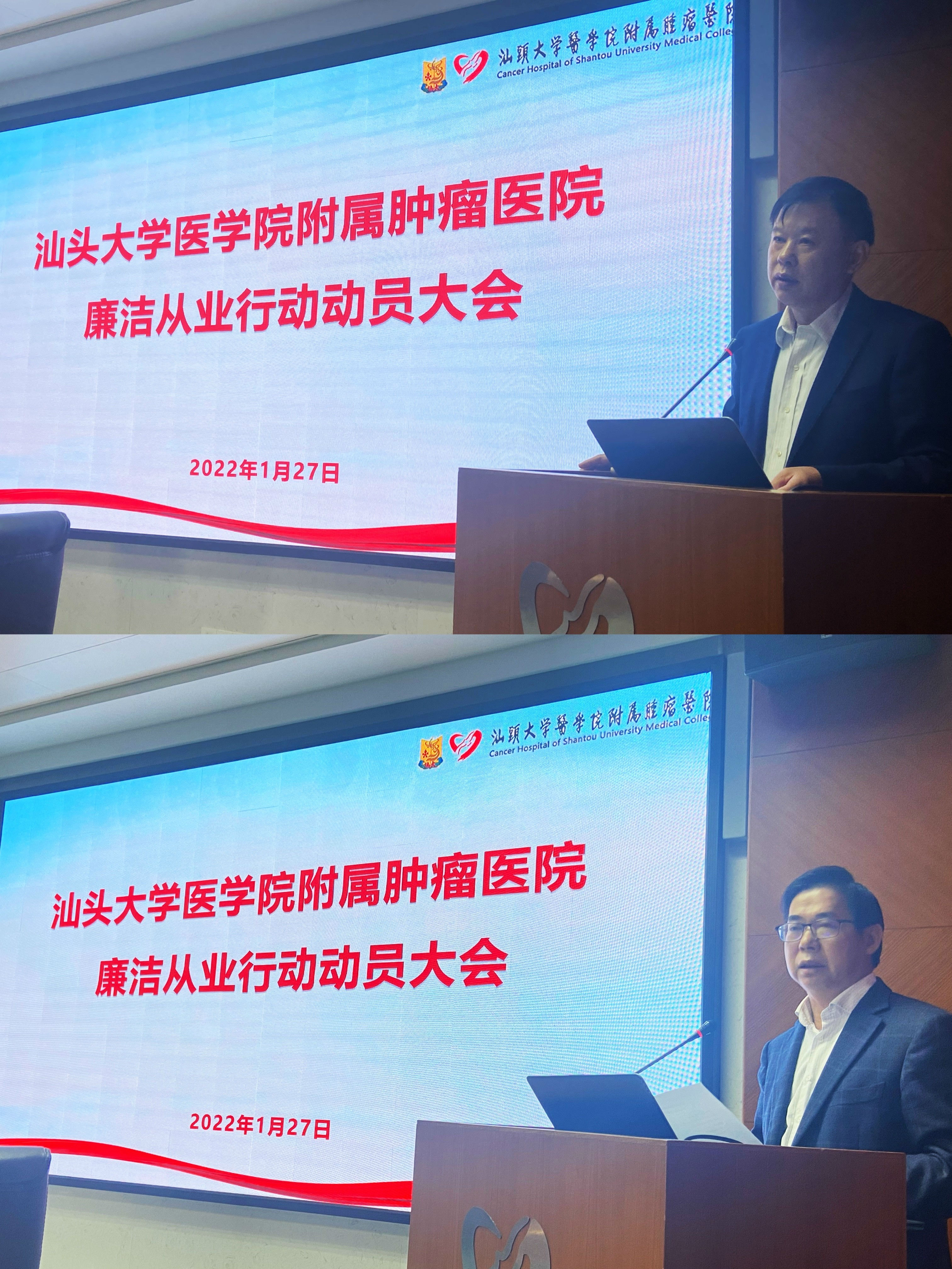 为进一步加强我院行业作风建设,提升全院职工廉洁从业水平,营造风清气正的医院环境,1月27日下午,医院在综合楼6楼会议室召开廉洁从业行动动员大会,医院党政领导班子成员、全体中层干部参加会议,会议由党委书记姚锡涛主持。