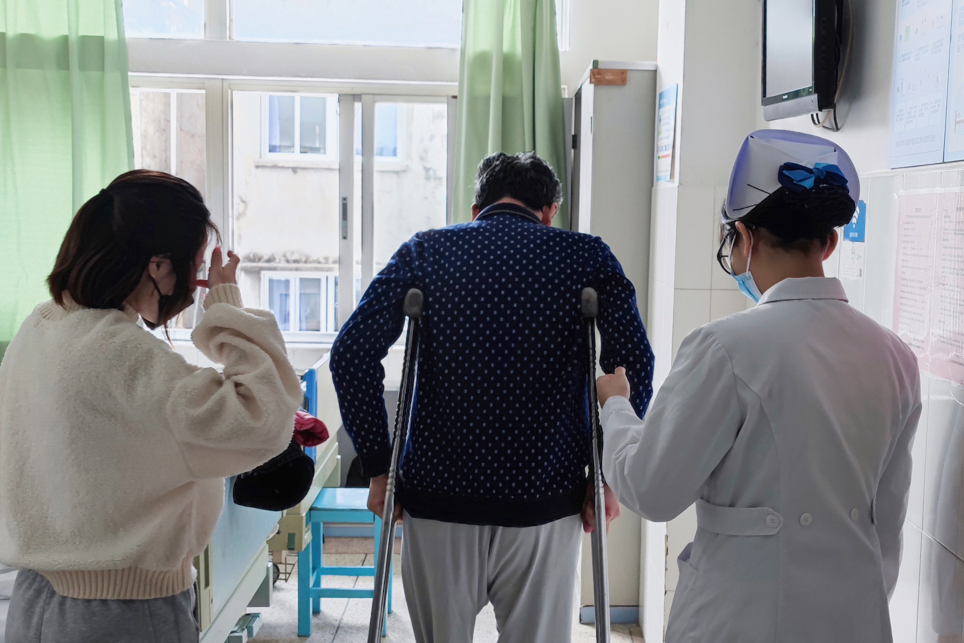 做好患者安全防护 协助行动不便患者下床活动,保持病房环境干净整洁,护士细心指导患者和家属正确使用防护用具,降低患者跌倒发生率。