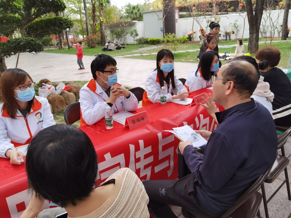药学志愿者们及种植的洋红风铃木苗 随后,志愿者们在公园发放安全用药科普宣传资料,提供免费的合理用药咨询,为群众普及科学用药、安全用药的健康知识。诸多群众来到现场向药师进行健康咨询,药师们也耐心地进行详细的讲解,得到广大民众的好评。