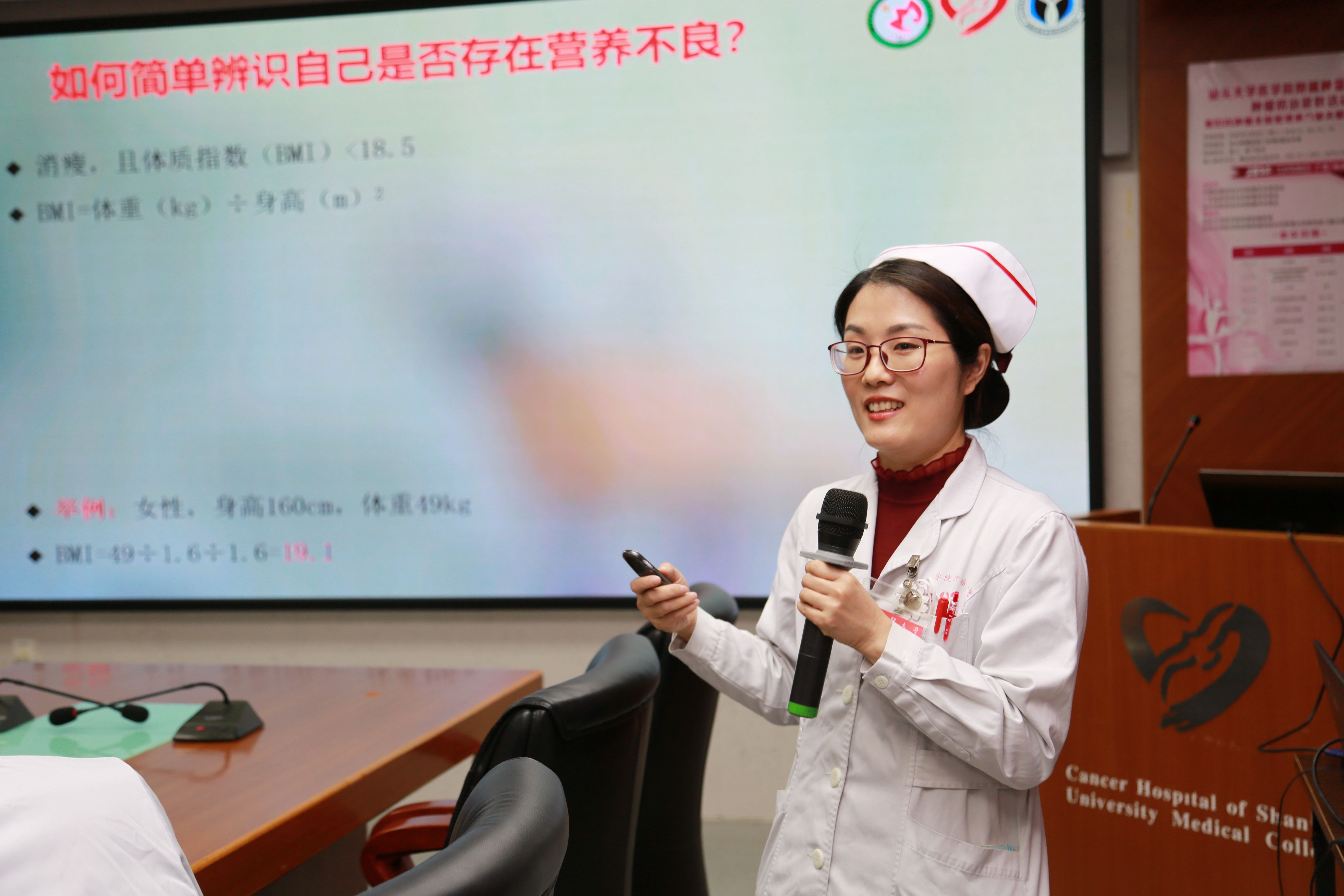 邱洁华护士长进行健康宣教 妇瘤科王晓静主治医师为众人分享了一位抗癌老奶奶20多年来的抗癌历程,鼓励在场的患者跟家属,虽然我们的敌人很强大,但是有强大的医生跟护士团队站在您的身后和你一起战斗。