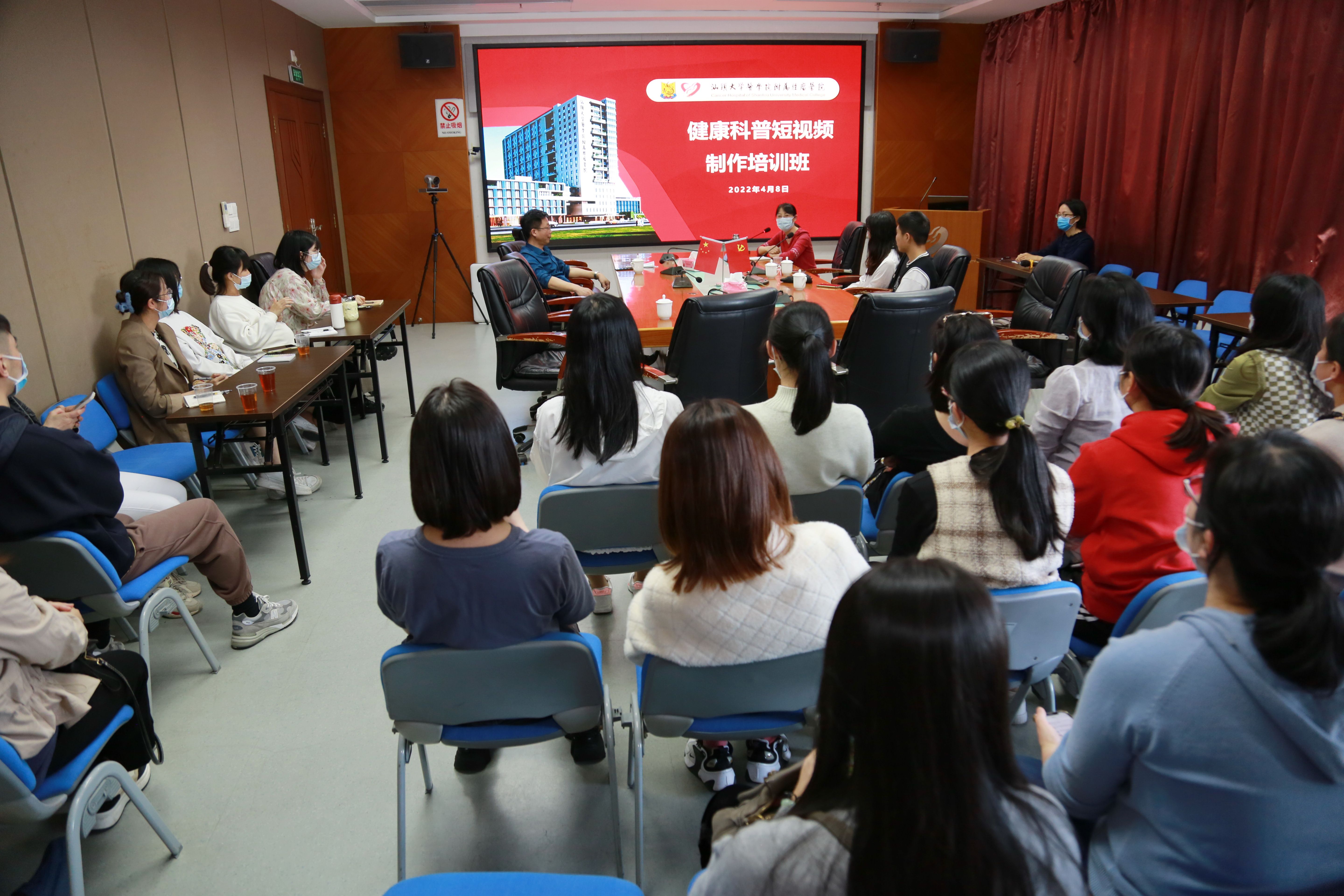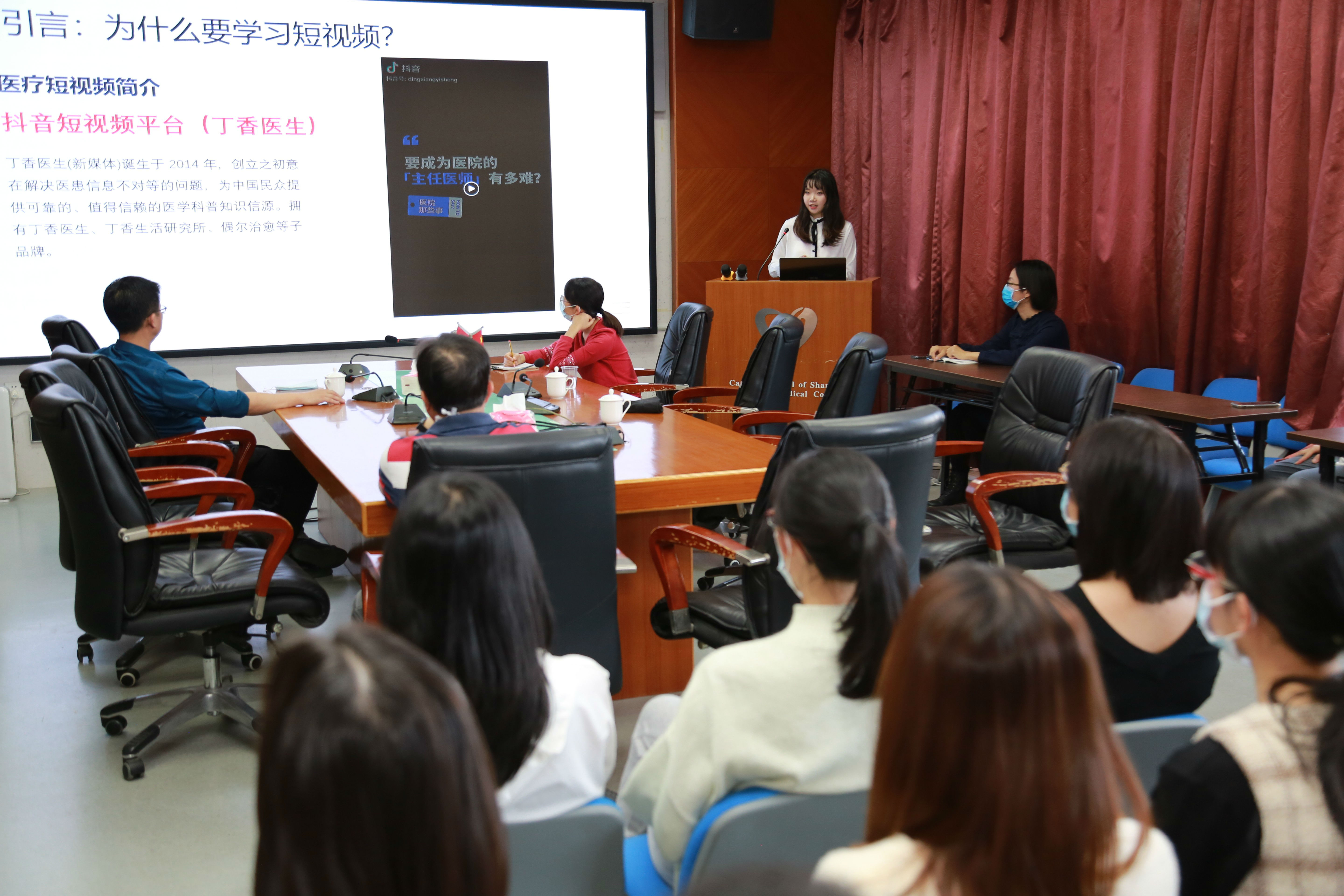 为适应新媒体融合发展的新要求,提升医务工作者的健康科普创作水平,传播更多健康科普知识,4月8日下午,由党委办公室、医疗拓展办公室联合举办的健康科普短视频制作培训班在肿瘤医院门诊楼六楼会议室顺利举行。医院各党支部宣传委员、各科室通讯员等参加本次培训。 本次培训班邀请到“原来乳此”医疗科普团队创始人之一、汕头大学新闻学院广播电视学学生何晓彤进行授课。此前由“原来乳此”医疗科普团队创作的短视频作品荣获国家癌症中心“健康中国,爱汝有责" 乳腺健康科普大赛预防筛查类一等奖等多项殊荣。