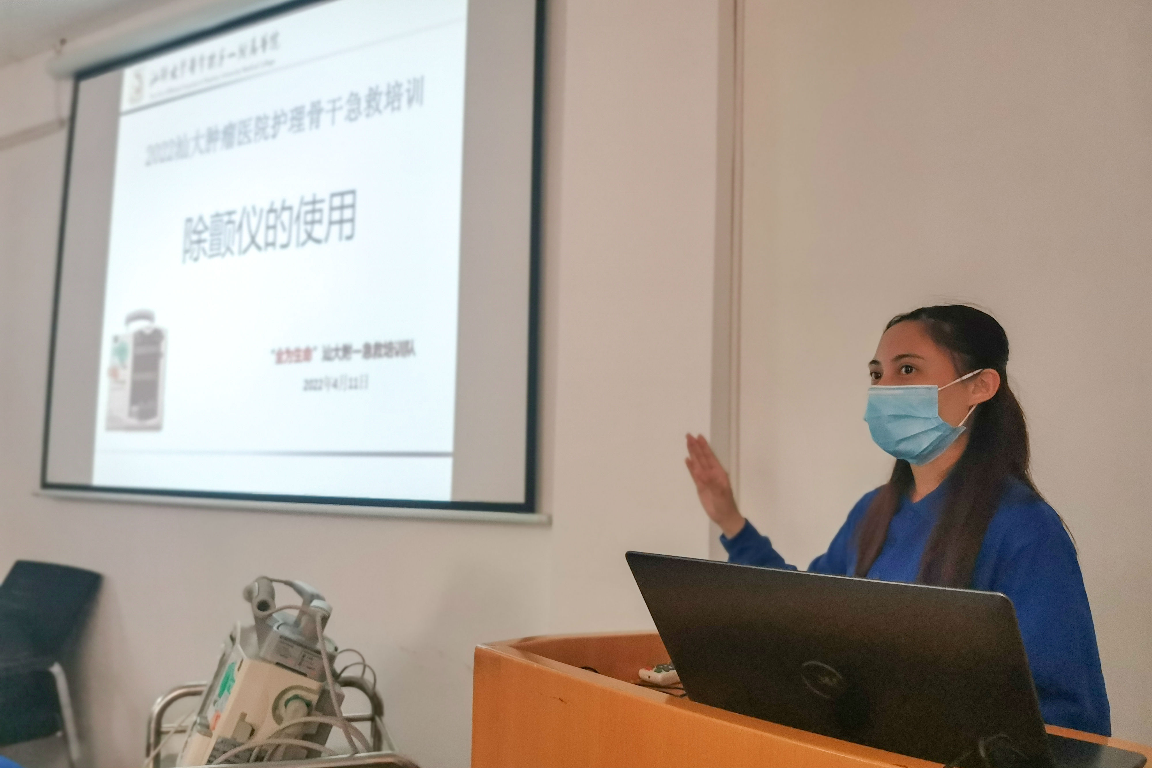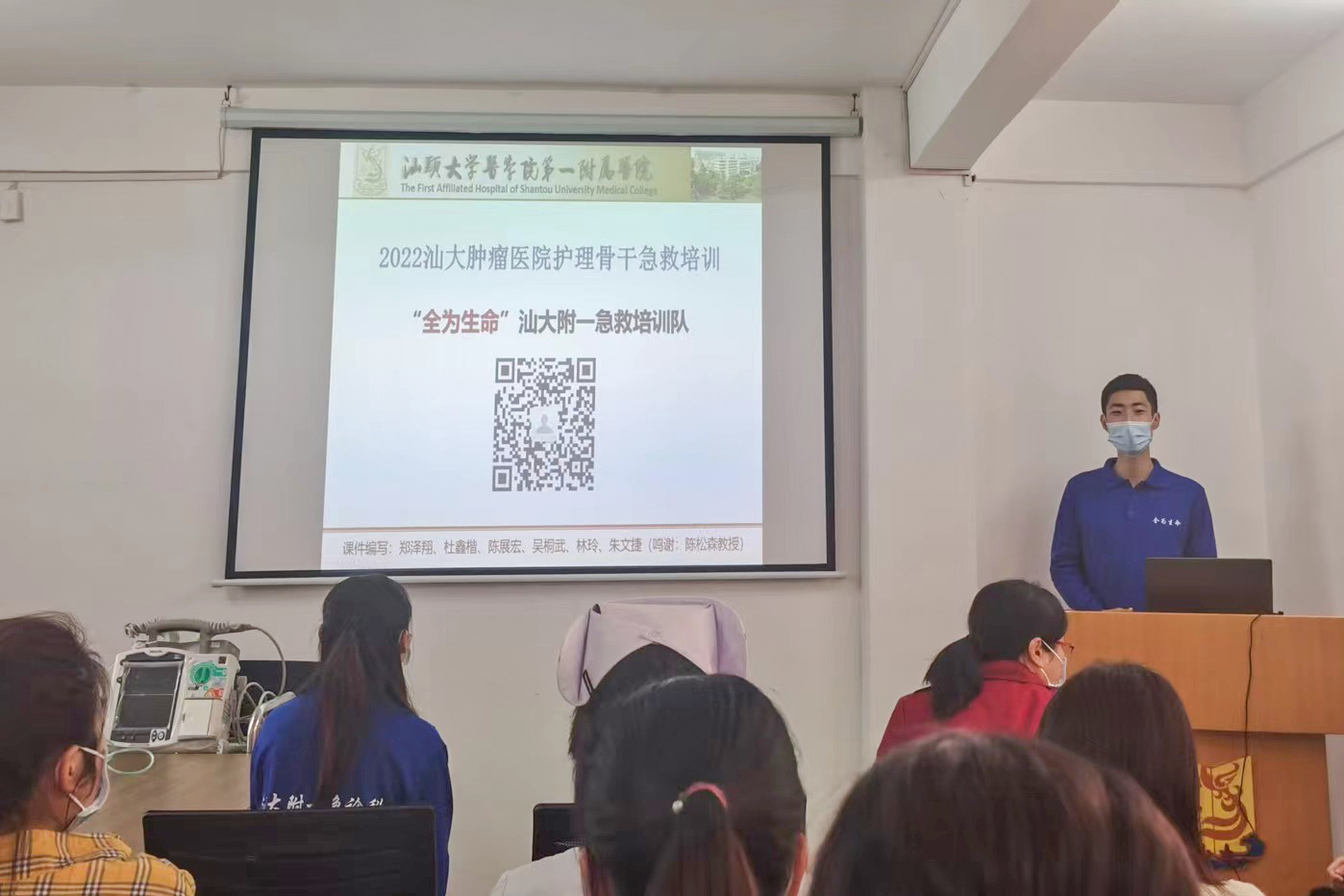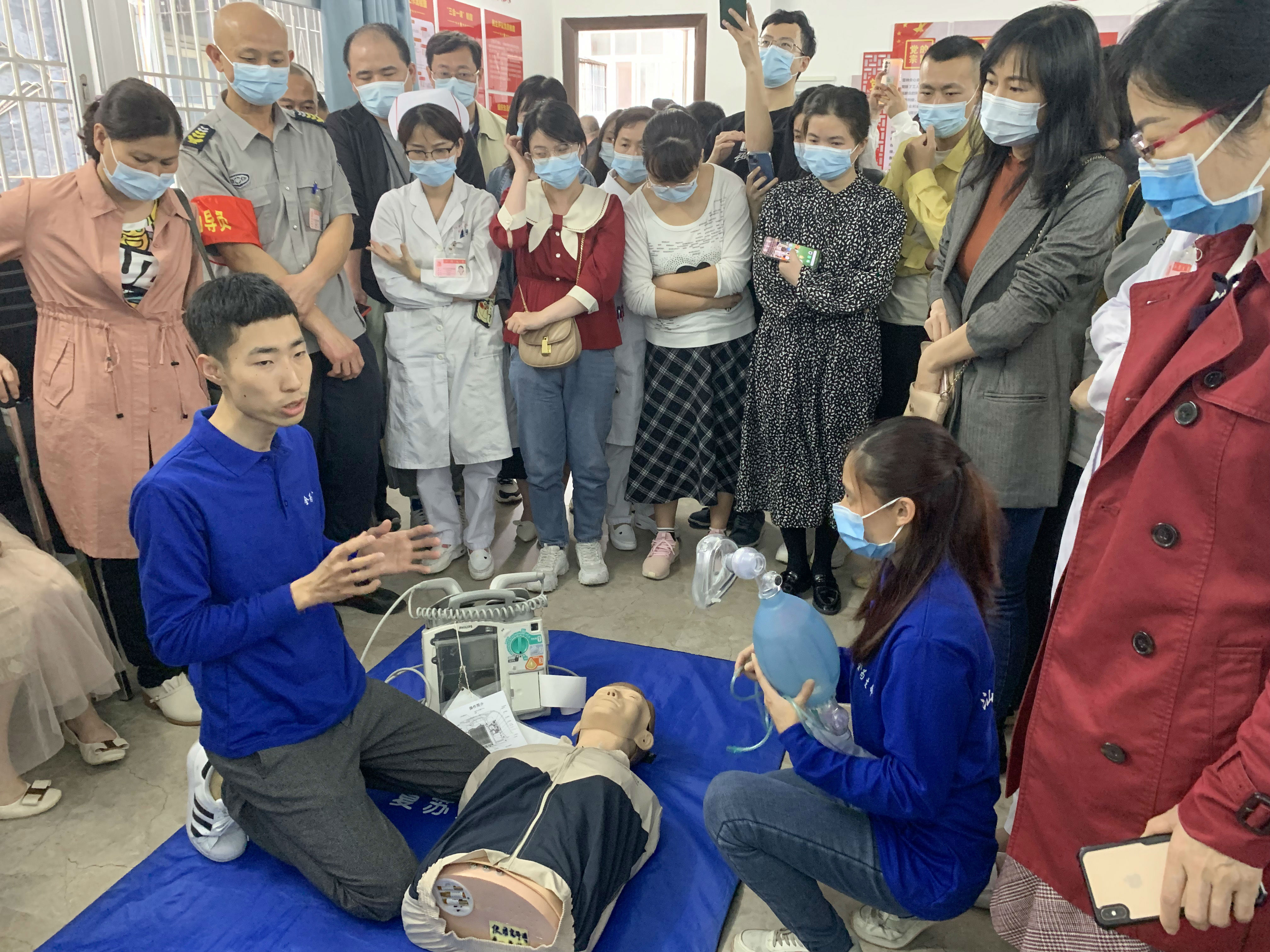 尊重生命,未雨绸缪,为规范临床护理人员急救技能操作,提升急危重症抢救能力,保障医疗质量与安全,4月11日, 护理部举办护理人员急救技能同质化专项培训班,培训班邀请了汕头大学医学院附属第一医院“全为生命”急救培训队的陈瑜和黄锐两位培训老师,对护理部急救技能培训小组成员、危重症专科护理小组成员进行培训,培训项目包括徒手心肺复苏(双人法)、简易呼吸气囊的使用及除颤仪的使用。培训班还吸引了部分职能科室人员踊跃参与。