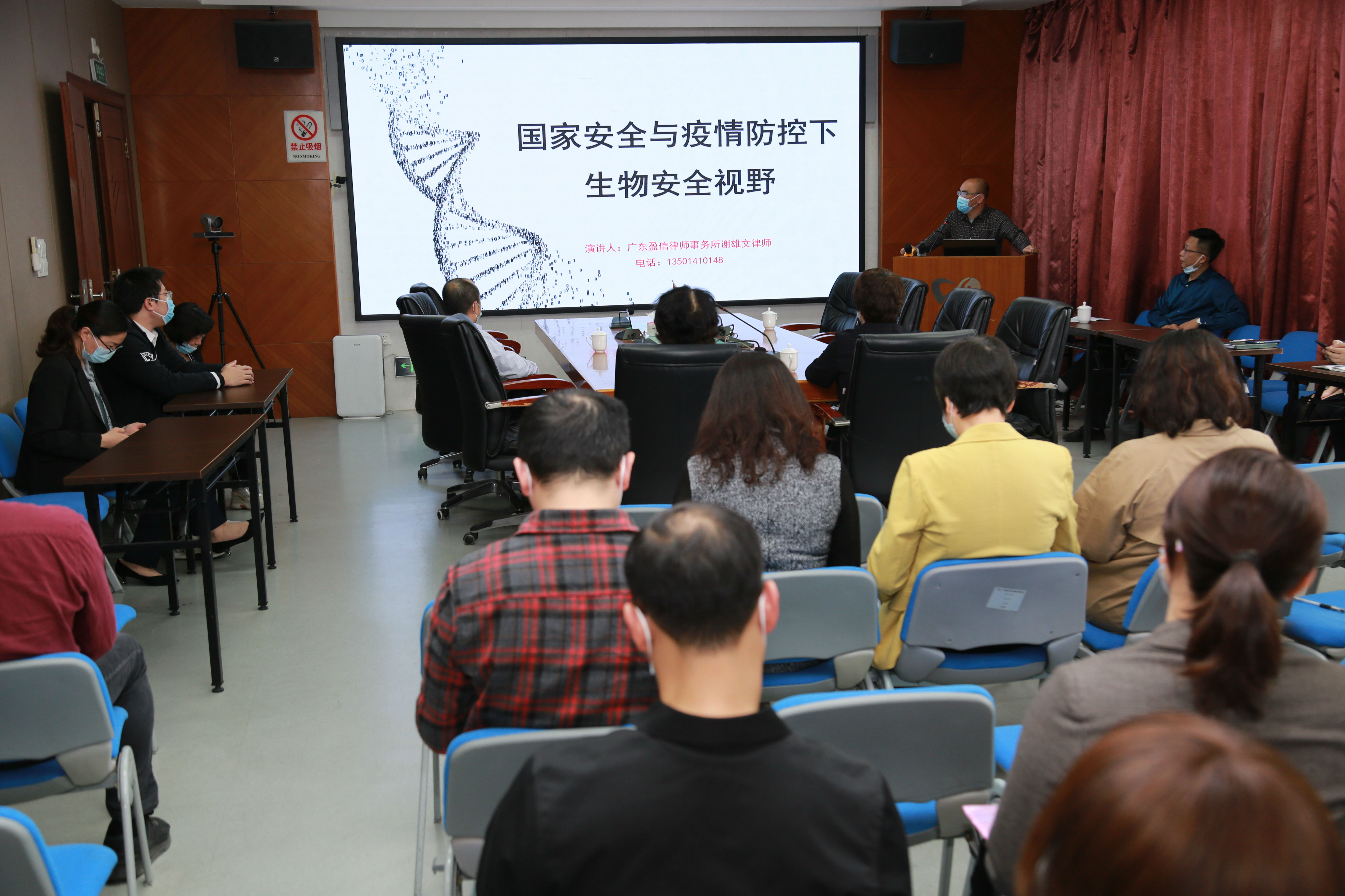 谢雄文律师 本次普法学习讲座邀请到广东盈信律师事务所谢雄文律师进行授课。通过PPT讲解的形式划重点、抓核心,分别从生物安全技术研究、开发与应用安全、人类遗传资源与生物资源安全、防范生物恐怖与生物武器威胁等方面,对《生物安全法》进行详细解读,强化全员生物安全意识。