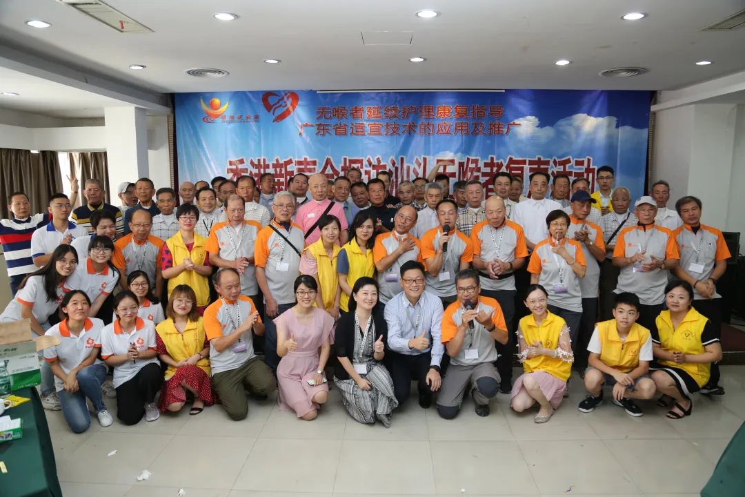 邱洁华做复声指导训练 2010年,邱洁华作为 护士被派往香港参加专科护士培养。一次偶然,她看到一位全喉切除的阿姨用小喇叭重新实现发声,顺着线索她又接触到了香港“新声会”,便将这种设备以及“新声会”的理念带回了汕头。从此,汕头因丧失发音器官导致“有口难言”的无喉患者也有了可以重新发声的机会。 2011年10月15日,是邱洁华第一次邀请香港“新声会”到汕头联谊教学的日子,也是汕头“新声会”成立的日子。 “一开始连医生都有些忐忑,不知道这样的活动是否会被无喉者接受,不确定他们是否有这样的需求。”那个时候,汕头还为喉切除术后出院的患者提供复声指导的先例。邱洁华找到病案室,自己给100多位登记在册的做过全喉切除术的出院患者一一打去了电话,甚至申请了出席活动费邀请他们参加活动。令她欣喜的是,接到电话的患者和家属一听能重新发声,都极感兴趣。