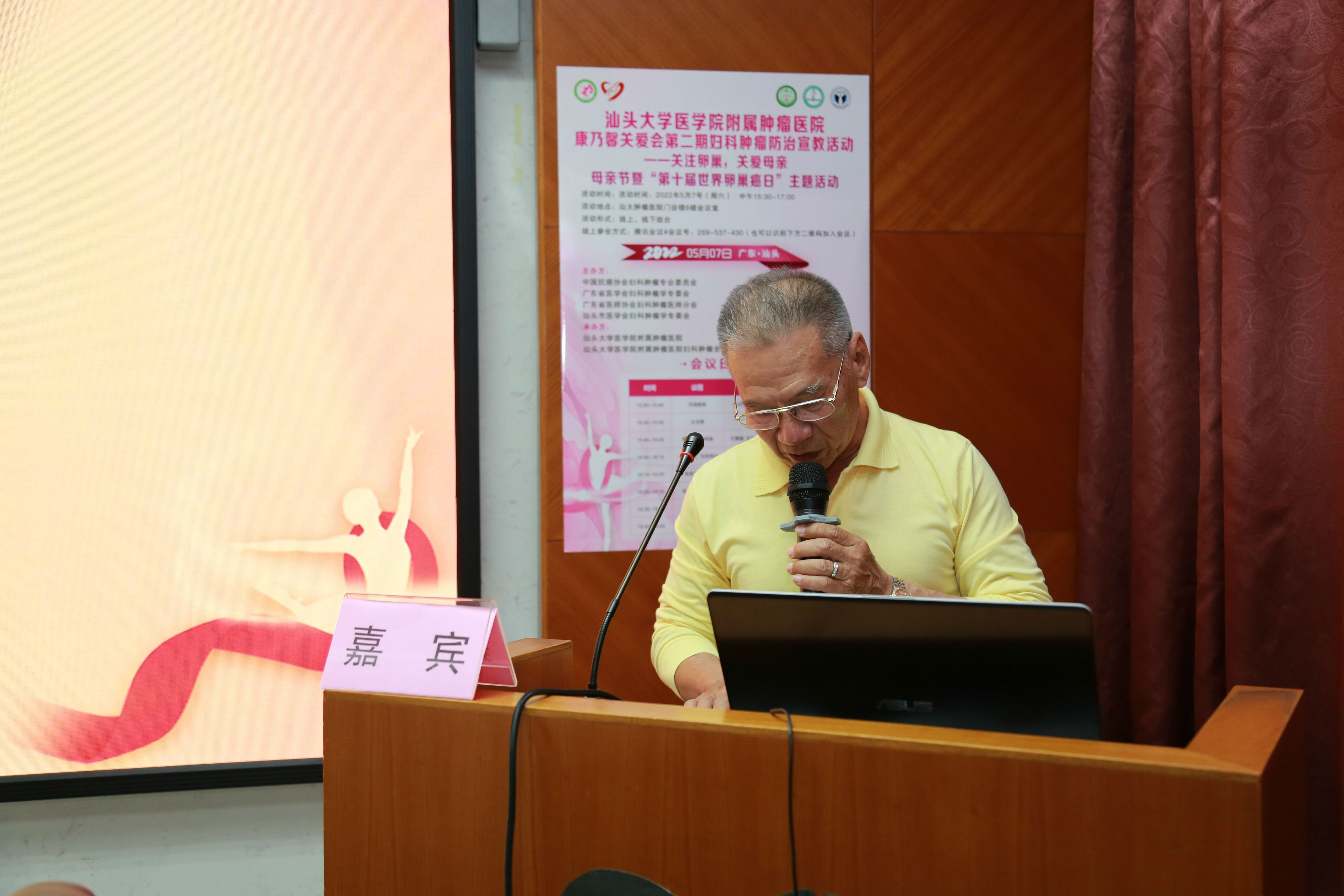 2022年5月7号,在母亲节和第十个世界卵巢癌日来临之际,由中国抗癌协会妇科肿瘤专委会、广东省医学会妇科肿瘤学专委会、广东省医师协会妇科肿瘤医师分会、汕头市医学会妇科肿瘤学专委会主办, 及康乃馨关爱会承办的“关注卵巢、关爱母亲”妇科肿瘤防治宣教活动在 开展。