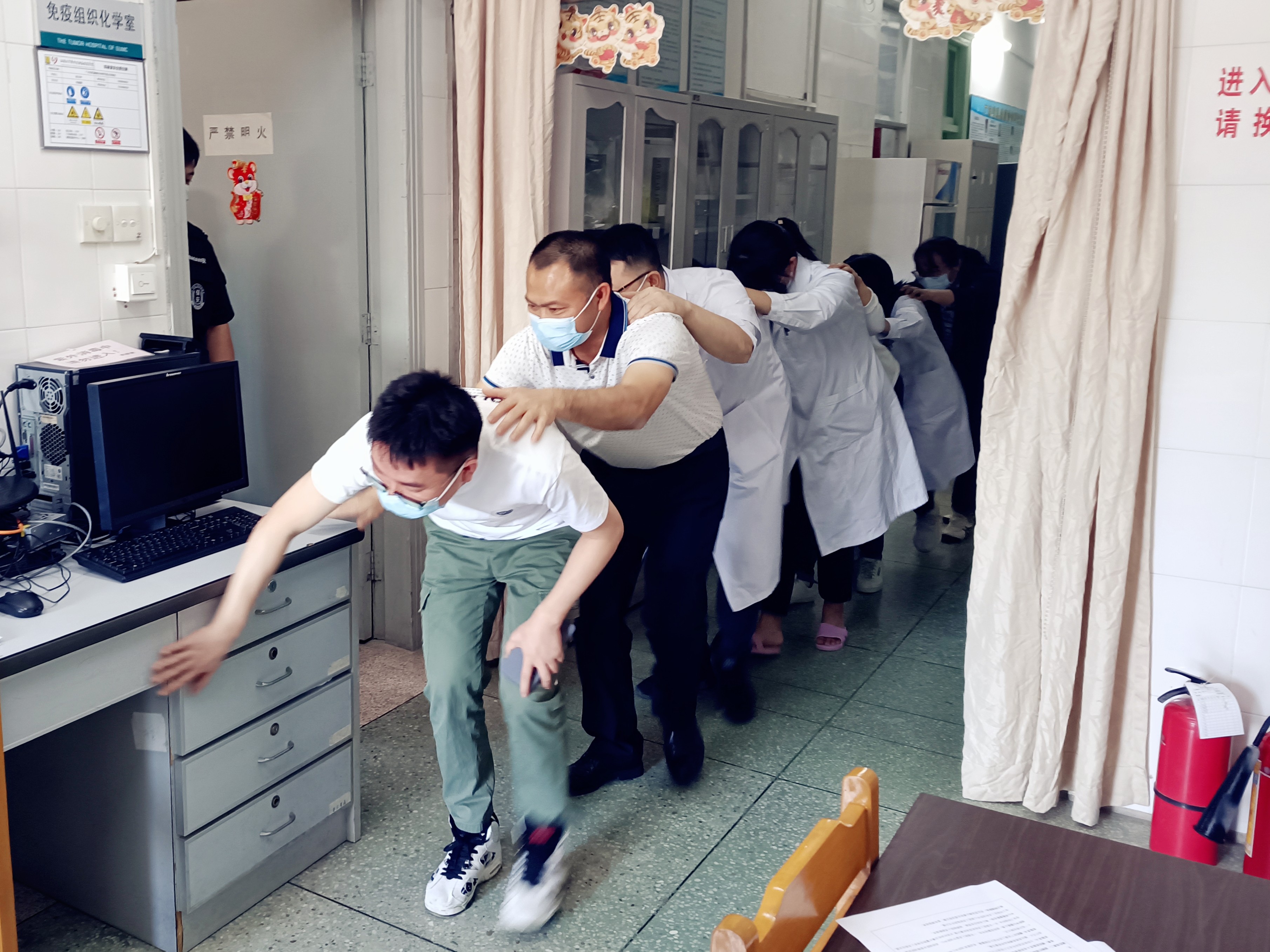 肿瘤医院中心实验室与保卫科联合开展安全事故应急演练