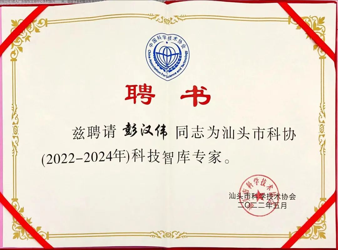 此外,市科协根据《汕头市科协科技专家智库管理办法》,经推荐和评议,从符合条件的申报者中选拔出10位专家,充实到市科协科技专家智库。 彭汉伟主任获评2022年度市科协科技智库专家,市科协党组成员、副主席陈爱明为获奖者颁发证书。