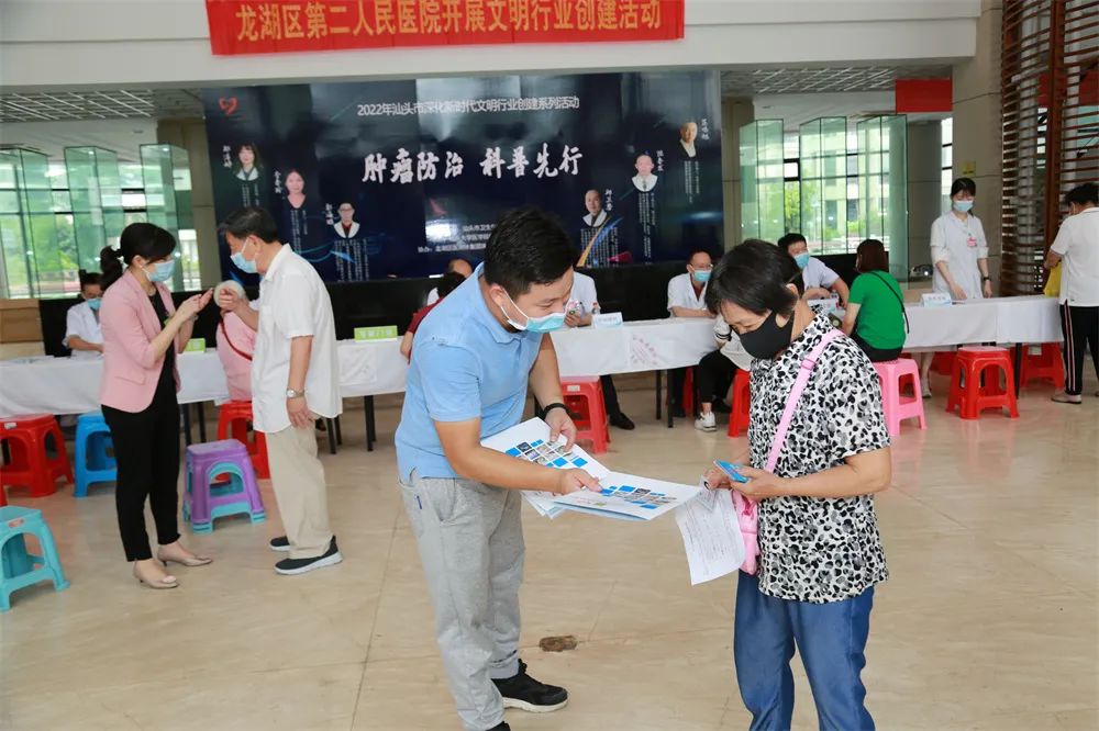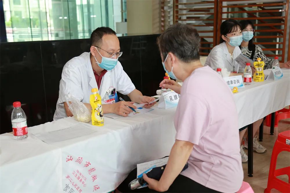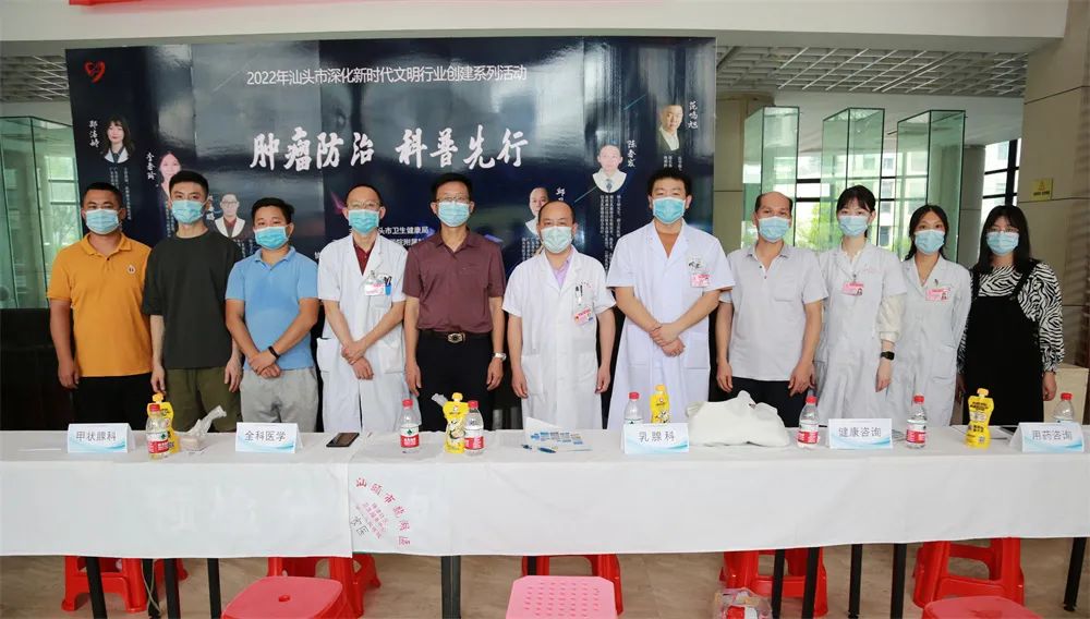 正值第35个世界无烟日,6月10日上午,由汕头市卫健局主办、 承办、龙湖区医共体集团珠津社区卫生服务中心协办的2022年汕头市深化新时代文明行业创建之“肿瘤防治,科普先行”科普公益活动在汕头市阳光海岸一期会所举办,相关科室专家、医护人员和就诊市民约100余人参加了活动。