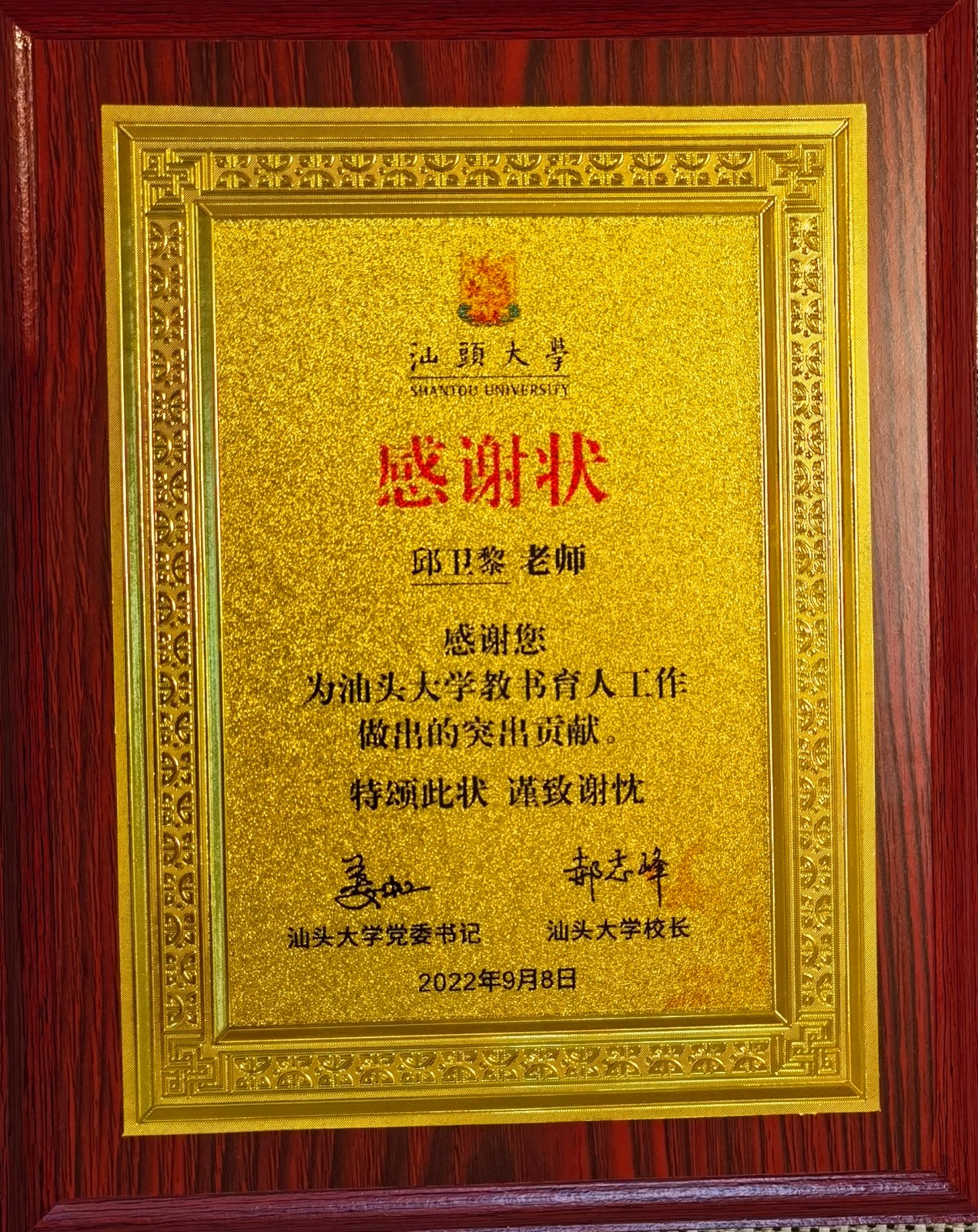 肿瘤医院邱卫黎、彭汉伟两位教师分获汕头大学、汕头大学医学院表彰