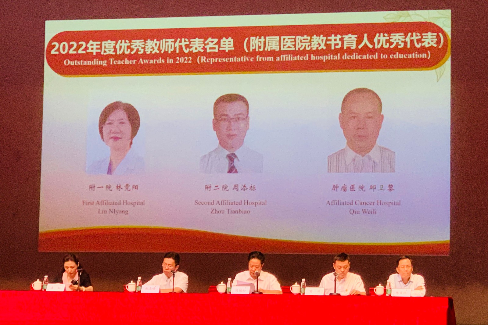 诲如春风育桃李,金秋硕果挂满枝。在2022年教师节和中秋节双节来临之际,汕头大学和汕头大学医学院对教师进行了表彰。 邱卫黎、彭汉伟两位老师分别获得2022年“汕头大学教书育人优秀代表”和“汕头大学医学院优秀教师”的荣誉称号,为我院的教学事业再添风采! 邱卫黎 中共党员,主任医师,全科医学主任医师、硕士生导师,联合培养博士生导师,预防医学副主任医师。现任 副院长兼医院医学伦理委员会主委、汕头大学医学院全科医学教研室主任。中国研究型医院协会科普教育专委会副主委;广东省医学教育协会全科医学与基层医疗卫生专委会主委;省中医药学会肿瘤学专委会副主委,省医学会全科医学分会副主委,汕头市医学会全科医学专委会主委等。主持完成省部级、市厅级科技计划课题6项;发表论文120多篇,其中SCI收录3篇;主编参编著作27部,其中主编的《全科医生》系列教材中医、西医两个系列,共10册,380多万字,受到国内全科医学领域顶尖杂志《中国全科医学》在其网站及纸质版义务宣传推广;2017年以来连续四年荣登“岭南名医录”,2018年荣登《环球精英》杂志,2022年荣登《华人》杂志。 1988年于汕头大学医学院临床医学专业(五年制)本科毕业留校工作。曾随父学中医,搜集民间验秘方,师从广东省名中医谢国材教授研习潮汕中草药。擅长全科医疗、癌症的中西医结合治疗、健康教育。创新性地把全科医学理念运用于癌症姑息舒缓治疗,屡创癌症治疗奇迹。2005年率先在粤东地区开展全科医学继续医学教育项目,传播全科医学理念,2012年,自荐创办医学院全科医学教研室,承担本硕生、本科生(含订单定向医学生)和进行全科医生规范化培训医生的《全科医学概论》教学,培养学生3500多人。在粤东率先招收全科医学专业硕士研究生,已招收7名,首位研究生彭长妹在首届“治趣杯”全国临床思维病例挑战赛2018总决赛中获得冠军。