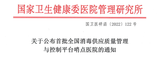 入选首批“全国消毒供应质量管理与控制平台哨点医院”