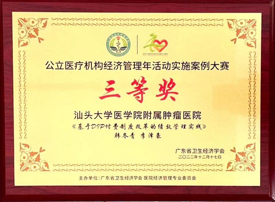 本次大赛由广东省卫生经济会医院经济管理专业委员会牵头组织,共收到来自全省100多个案例作品,评选出一等奖3个,二等奖5个,三等奖15个,优秀奖若干,同时增设最佳团体奖。 近年来我院积极贯彻落实国家、省关于开展经济管理年活动的相关要求,医院领导高度重视,成立肿瘤医院的经济管理年活动领导小组和工作办公室,党政一把手任组长,各分管院领导为副组长,总会计师牵头负责总体工作,各相关职能科室负责人为小组成员,办公室设在计财科。同时明确各个牵头部门,落实责任分工,形成领导重视、共同参与、人人有责任的协同推进机制。 通过不断梳理近年来医院运营管理中存在的问题,以经济管理年活动为契机,结合医院“创三甲”工作,借助经济管理赋能,逐步实现医院预算管理工作预算和业务一体化,持续加强资产管理,有序推进智慧财务建设,率先开展基于DIP付费的病种成本核算与管理,成本管控成效逐步显现,基于DIP付费制度进行绩效管理改革。同时以学促研,以研促干,针对每年医院运营管理工作重点举办省市级继续教育项目,申报科研课题,撰写论文,到全国性的医院财务会计大会上交流学习,参与论著编写等。