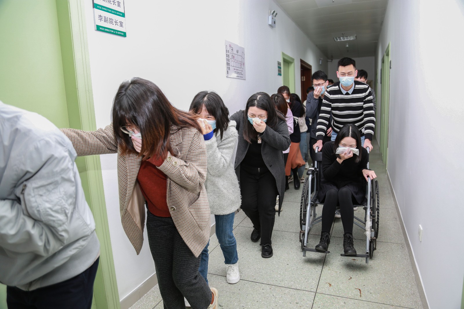 此次消防演练,模拟医院六楼会议室突发火情,参会人员发现火情后立即向总指挥报告,启动消防应急预案,并迅速展开应急疏散和先期灭火处置。听到消防警报后,六楼职工在安保人员指挥下,弯腰低姿捂口鼻快速有序从消防通道撤离至安全区域。大家都参与到演练中来,各个环节有条不紊地进行,消防演练取得圆满成功。