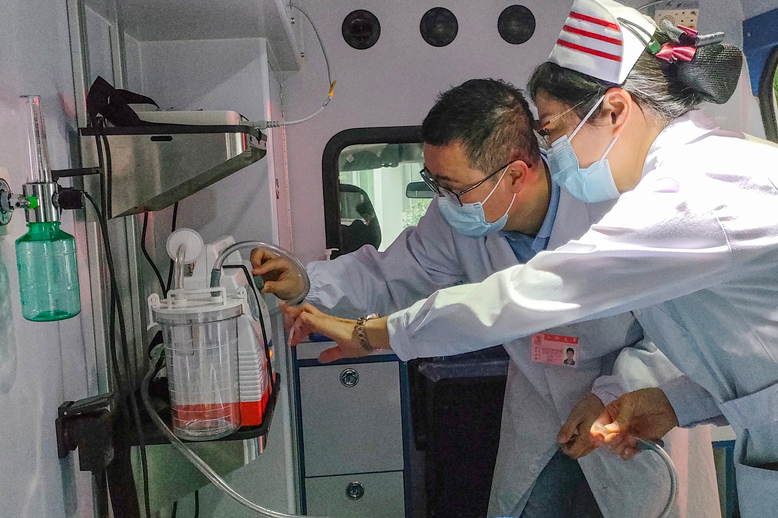 演练中,医务科协同护理部和急诊室现场查看急救车设备。此次演练使急救队员进一步熟悉“三防”医疗救护的关键流程和重点环节,提高应急处置水平。同时也检验了“三防”医疗救护演练各环节的通畅性,进一步提升我院急救队员的应急反应能力以及多部门协作救治能力。