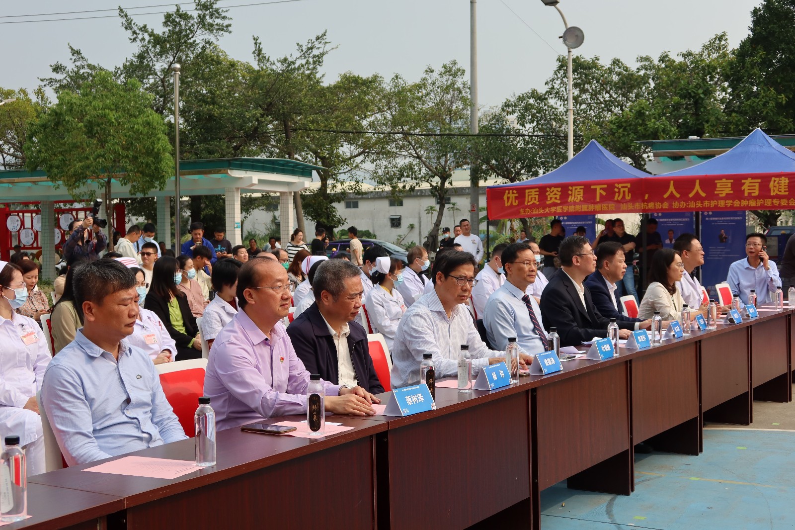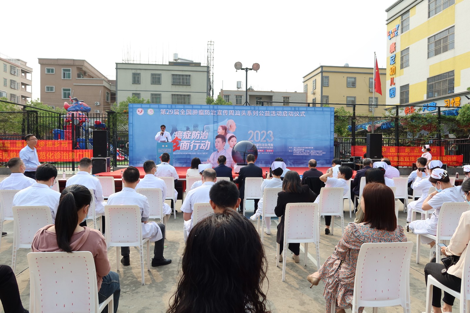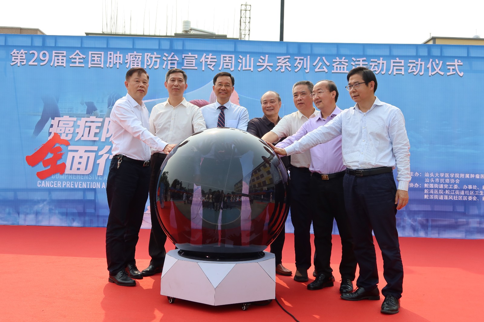 活动由 、汕头市抗癌协会主办,以“癌症防治 全面行动——全人群全周期全社会”为主题。汕大医学院党委陈茂怀书记、市科技局林立新处长、市卫健局叶镇鹏副局长、市抗癌协会杨伟理事长、汕大医学院肿瘤医院党委书记姚锡涛、党委副书记、院长王新家、鮀莲街道党委蔡树泽书记、金平区卫健局副局长林楚佳、鮀浦医院一体化医联体陈李祥院长等领导出席启动仪式。