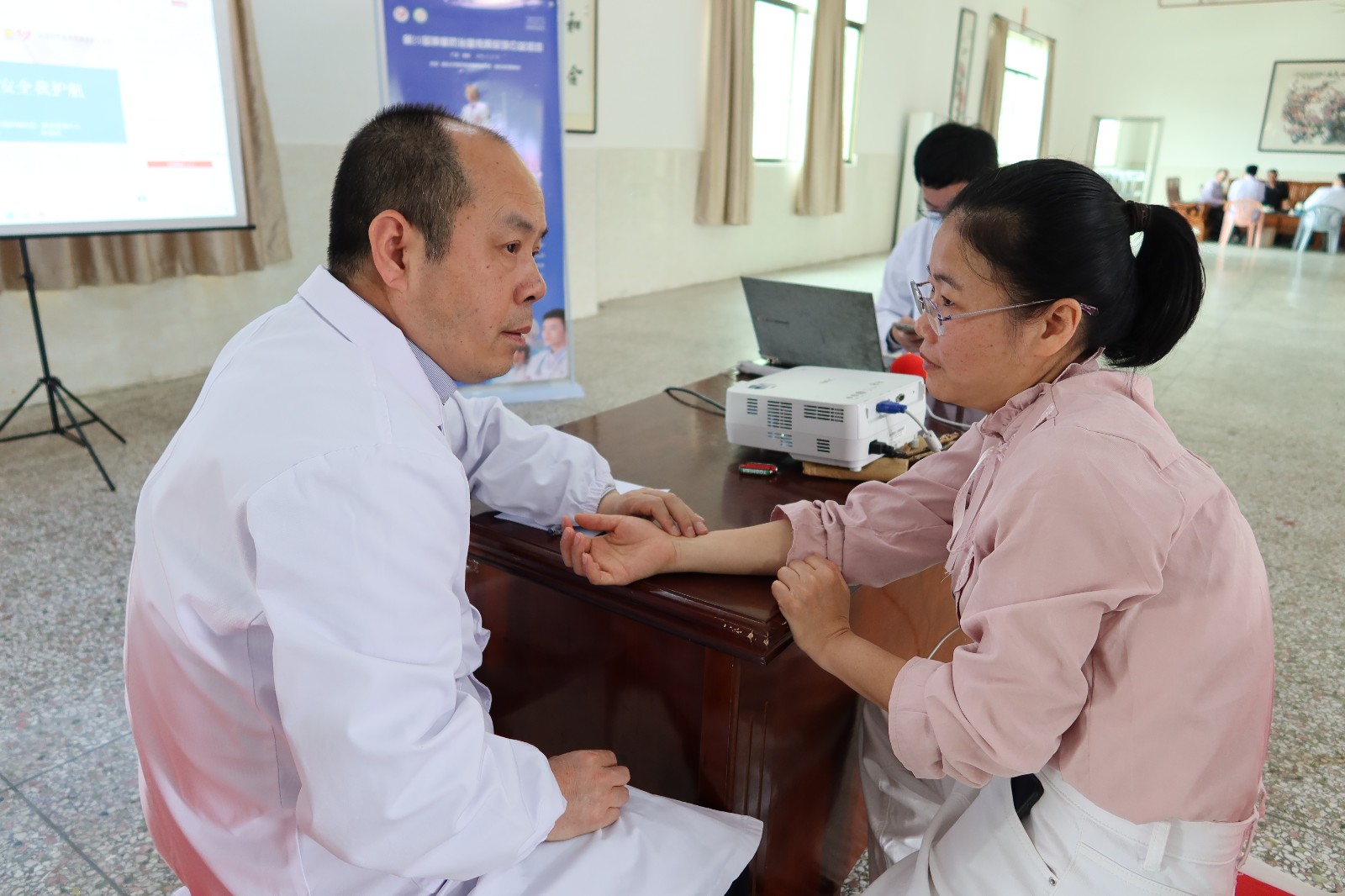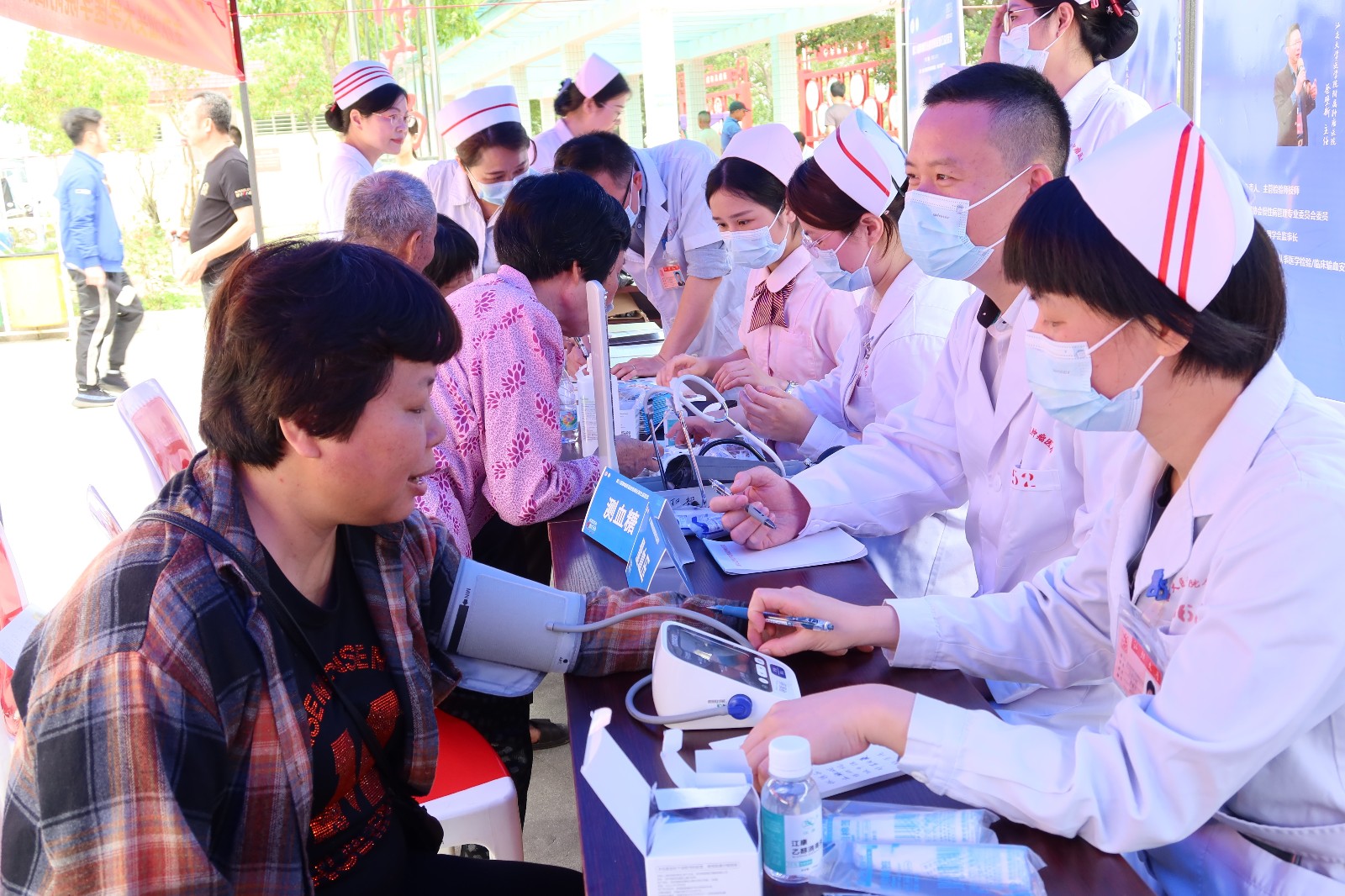 发放健康宣传资料 志愿者服务的身影成为一道亮丽的风景线,他们活跃在各个区域,通过发放健康宣传资料,维持义诊现场秩序,用自己的实际行动为广大群众送关爱、送健康、送服务。