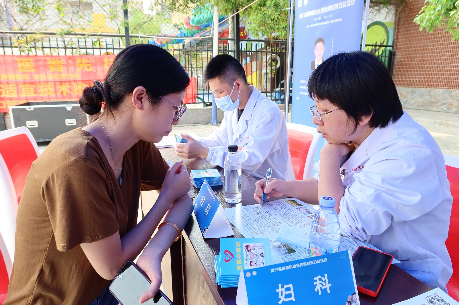 现场义诊 启动仪式结束后,现场义诊正式开始。义诊咨询台前摩肩接踵,肿瘤医院肝胆胰外科、骨和软组织肿瘤外科、妇科等10个肿瘤内、外专业科室共16位专家免费为群众义诊。专家们认真听取咨询者的病史,细致分析检查结果,为患者提供专业的诊断和治疗建议,耐心向居民宣传讲解肿瘤防治科普知识,向就医和咨询的居民普及癌症防治知识核心要点。