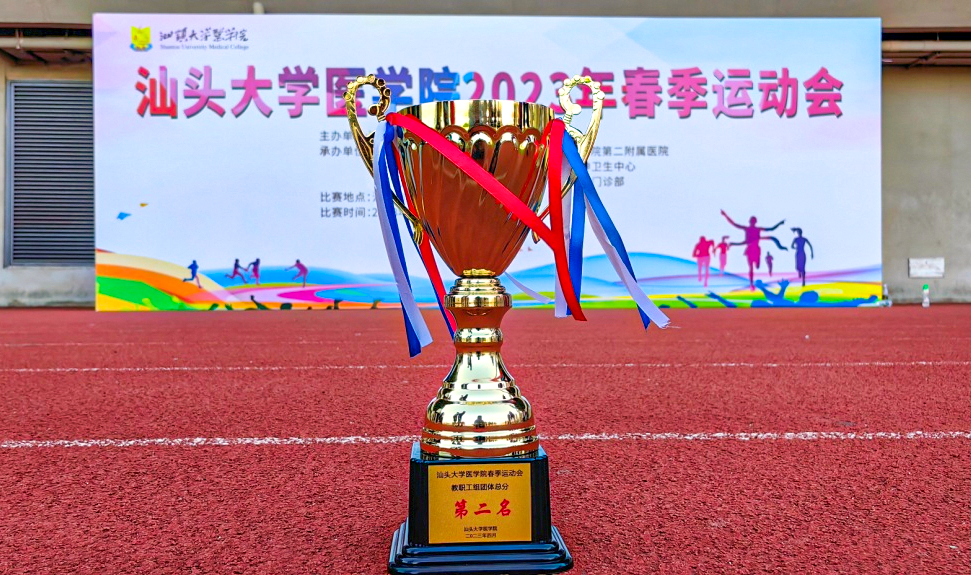 4月15日-16日,汕头大学医学院春季田径运动会在汕头市人民体育场隆重举行,我院运动健儿们团结拼搏,奋勇争先,共取得8金、4银、5铜和13项4-8名奖项,最终在七支教工代表队中团体总分及奖牌数均取得第二名的优异成绩。