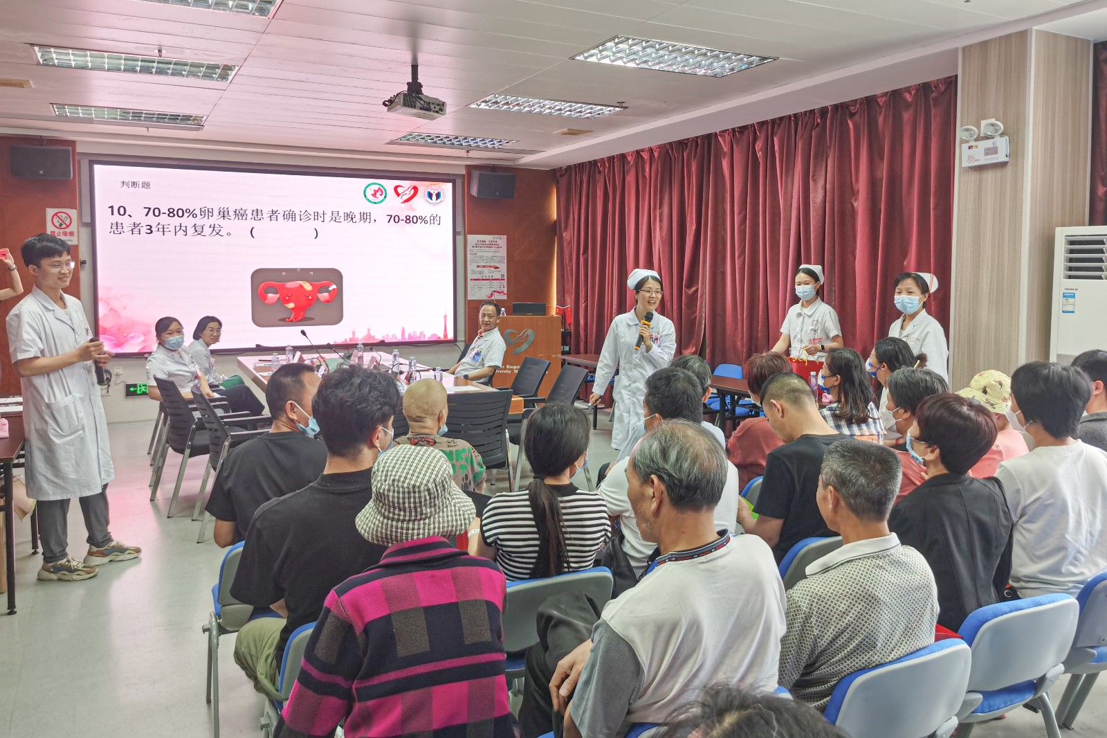 妇瘤科王晓静主治医师介绍了“卵巢癌化疗药物不良反应及护理”,加深了在场患者及家属对常见化疗药物的认识,减轻患者对化疗的恐惧。
