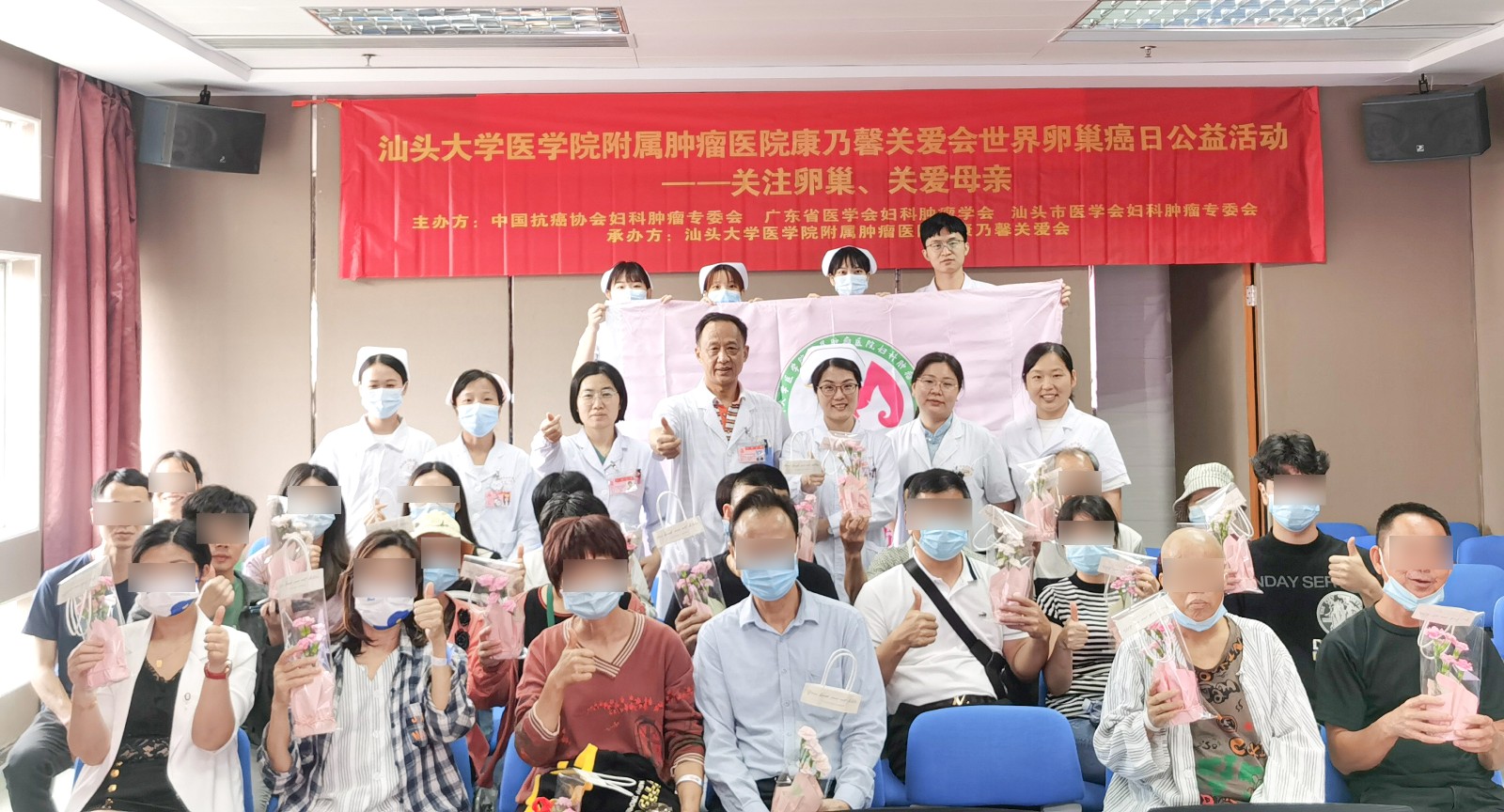 5月8日为世界卵巢癌日,它是由世界卵巢癌联盟于2013年发起并设立,主要为了推进全社会对卵巢癌的了解,加强患者的抗癌信心,呼吁社会给予患者更多的关心与爱护。 2023年5月8日, 妇瘤科举办了以“关注卵巢、关爱母亲”为主题的科普讲座及健康宣教活动。本次活动由中国抗癌协会妇科肿瘤专委会、广东省医学会妇科肿瘤学分会、汕头市医学会妇科肿瘤专委会主办, 、康乃馨关爱会承办。 在活动致辞环节,肿瘤医院副院长、妇瘤科主任李从铸表示卵巢癌是妇科肿瘤中最为凶险的癌种,被称为“妇癌之王”,亦有“沉默杀手”之称。在临床上,卵巢癌有三个70%困扰着医生和卵巢癌患者:70%的患者确诊已是晚期;70%的患者会在初次治疗后两三年内复发;70%的患者生存时间都不超过五年。